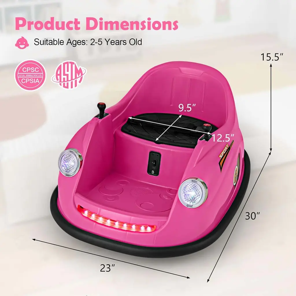 Drive into a world of fun with our 12V electric ride on bumper car! Equipped with 12V powerful dual motors, this electric bumper car provides a reliable performance. The 12V 4.5AH rechargeable battery offers extended playtime, boasting easy charging with the convenient charger and port. Parents can control the bumping toy with the remote for younger kids, while older ones can drive themselves using the joysticks. With the ability to spin 360° on 2 universal wheels and soft bumpers for safety, this ride-on toy promises a thrilling and secure ride. Additionally, the bright LED lights and playful music add to the excitement of every adventure. Designed for children aged 2 to 5 years, this baby bumping toy makes for a perfect gift that will bring joy and learning together. Features:Specification
