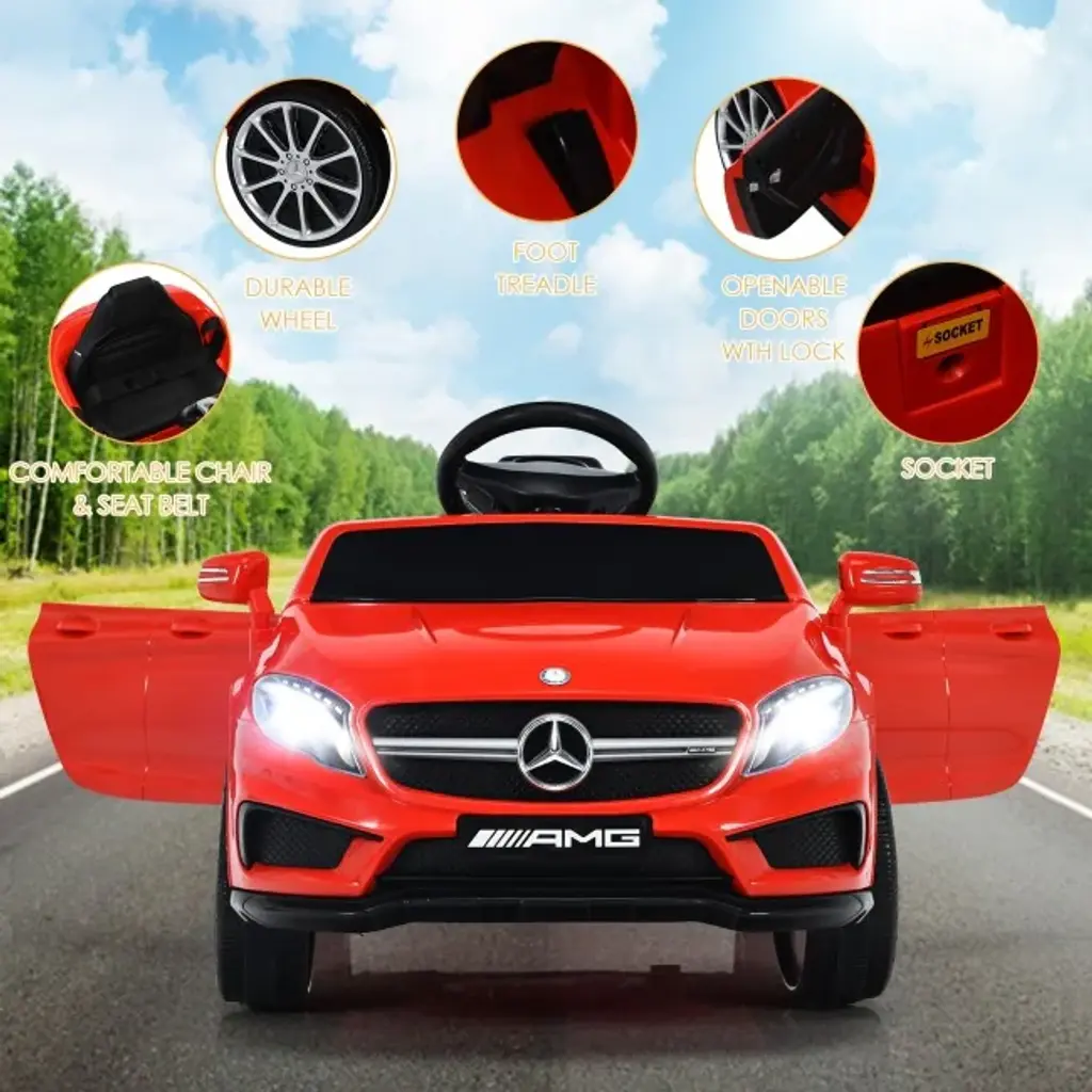 Specifications Key Features● Real Driving Experience: This officially licensed Mercedes-Benz GLA45 coupe has the real look of a real Mercedes-Benz car. Cool and stylish exterior, bright front and rear lights, double door safety locks, and instrument panel atmosphere lights make every detail perfect to provide the most authentic driving experience for your children. ● Two Modes: This children's toy cars have two driving modes. Parental control mode: Parents can control the toy car to protect their baby during play and enjoy being with their baby. In battery-operated model, babies can exercise their sense of direction by turning the steering wheel and stepping on the pedals. ● Multiple Functions: This toy cars are well designed, professional designers have equipped toy electric cars with LED lights, speakers, USB, and TF card slots, which can be connected to music to add fun to drive. In addition, children can control their own forward/backward, and a button to start, children can feel their own driving happiness. ● Safety First: The remote control car has two speeds that can be adjusted and can start at a slow speed to protect the safety of the baby. The car is designed to absorb shock, and its four wear-resistant wheels are made of high-quality materials that can adapt to all kinds of roads, bringing a smoother driving experience for children. The onboard charging system is certified by CEC, DOE, and ASTM and is very safe. ● Easy to Assemble: This kits include all the accessories needed to assemble a vehicle. With detailed instructions to help you complete the assembly in a short time. This portable 12V electric toy car has a maximum carrying capacity of 66 LBS. Recommended age :3-6 years old. In addition, the front folding pull handles, behind the auxiliary wheel, are easy to carry and move.DescriptionThis electric kids ride on car will give endless fun to your kids!This children's toy car has a very cool look that makes it a shining presence for your child to sit on. The front and rear lights, double-door safety locks, parent remote control and other devices can effectively ensure the safety of children while bringing a real driving experience to your children. In addition, considering the child's playful nature, this electric toy car is equipped with LED lights and speakers to add fun to the child's driving journey.If you are looking for such a ride on car for your kids, do not hesitate to buy it!