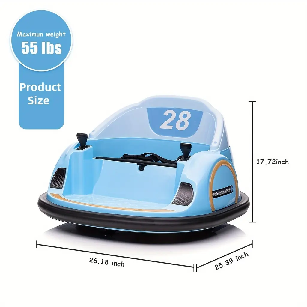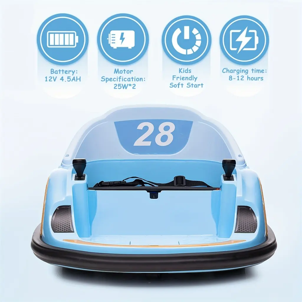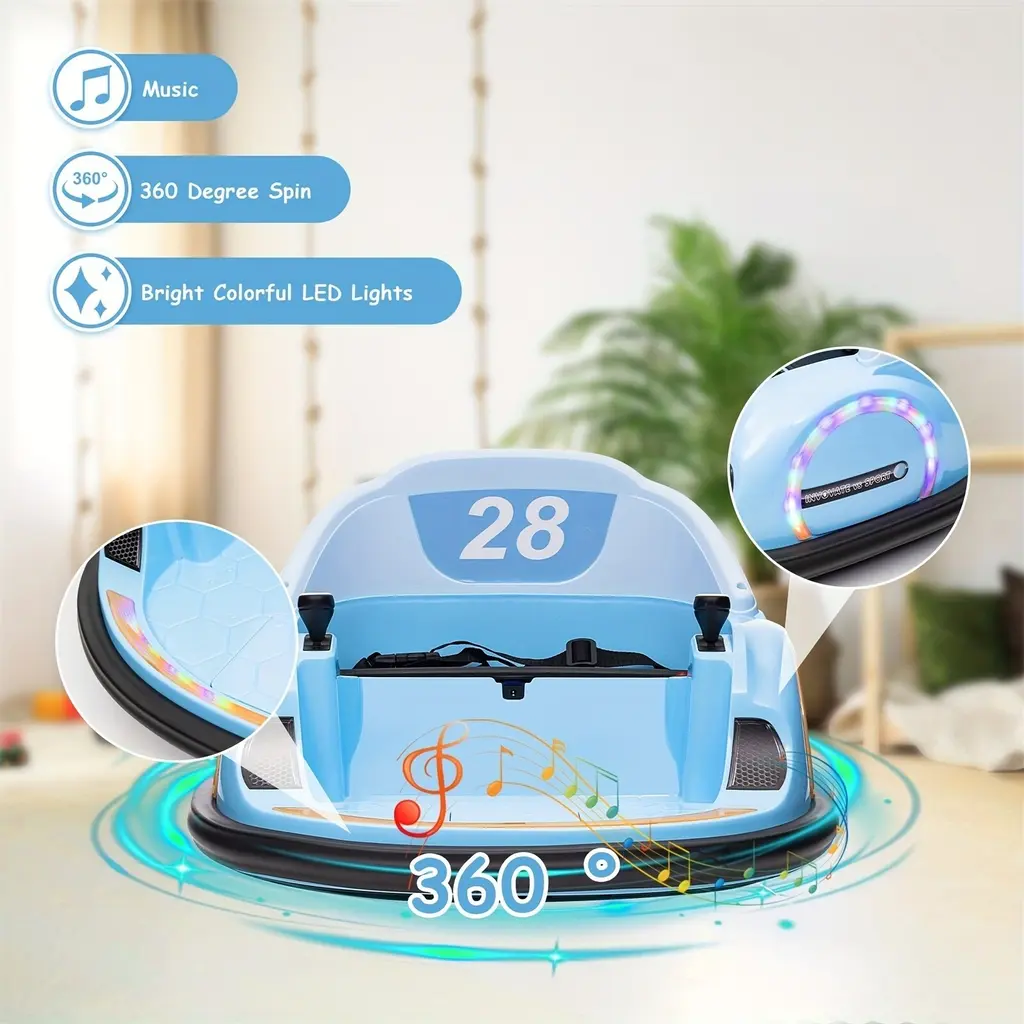 Enhanced Performance: The kids bumper car is powered by a long-lasting 12V rechargeable battery, ensuring extended playtime. Equipped with 25W*2 powerful motors, children can drive comfortably on various terrains, experiencing premium performance with every journey.360-Degree Spin Wheels: Featuring 2 directional wheels and 2 360-degree spin wheels, this ride-on bumper car offers smooth movement and flexible turns on different road surfaces, enhancing the overall driving experience for children.Driving Modes & Parental Control: The electric bumper car provides easy control and maneuverability with dual joysticks, allowing kids to drive independently and enjoy the thrill of driving. Parents can also utilize the 2.4G remote control to control forward, backward, steering, and speed functions, ensuring the safety of children during play.Entertaining Features: The toddler toy car includes colorful LED lights, dynamic music, and engaging stories to create a fun and entertaining experience for children. Additional features such as the USB port and battery indicator add convenience to the ride.Safe and Durable Design: Designed with soft anti-collision strips, the battery-powered bumper car is crafted from durable materials that meet rigorous child safety standards, ensuring reliability and safety during playtime. This ride-on toy offers a unique ride experience, making it the perfect gift for both boys and girls seeking an exciting playtime adventure.