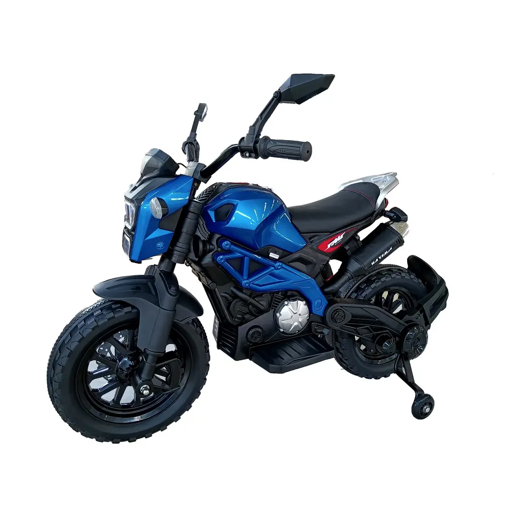 12v Electric Ride-On Motorcycle For Kids With Training Wheels And Music - Blue