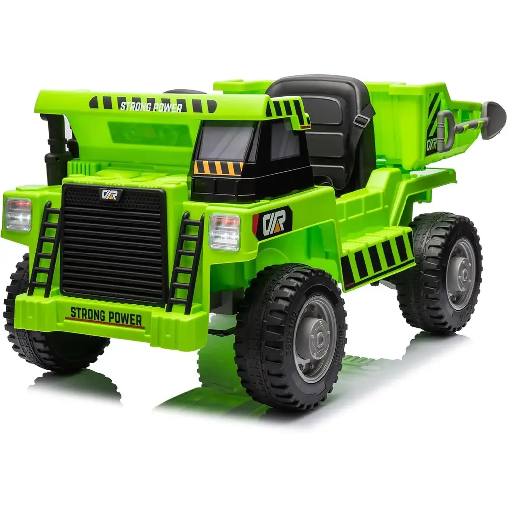 【Kids Driving & Parental Remote】The ultimate in driving flexibility for little ones. In manual mode, kids can lead themselves at 2 speeds to anywhere they want; In remote control mode, parents can adjust 3 different speeds and flexibly control the direction of this ride-on truck through the remote control, at the same time increase the interaction between parents and kids. 【Multimedia Design】 Every detail is designed to keep your kids ride in safety and style! Onboard MP3 player and speakers play tunes or truck sounds while a USB charger keeps devices powered for entertainment on the go. The high-quality tires ensure smooth rides on various surfaces like lawns, concrete road, tile road, gravel and more 【Kids Electric Car】Driven by two 12V 35W powerful electric motors and four 11 in larger wear-resistance wheels, this kids' ride-on toy can load up to 66lbs, besides flat asphalt roads, it's also very suitable for driving on grassland or gravel road. 12V ride on dump truck keeps kids entertained for hours with realistic sounds, music playback, remote control operation and functioning electric dump bed. 【Riding Safety】Featured with the key start, horn sound, headlights, dump bed and built-in music, this electric car provides a lifelike driving experience for kids; Low 12V power keeps rides smooth and safe on paved surfaces, while all-terrain tires and protective cage help little builders explore both indoors and out. 【Automatic Lifting&Dumping】Authentic construction vehicle design features Electric working dump bed, shovel, and battery level indicator to spark imaginative play.