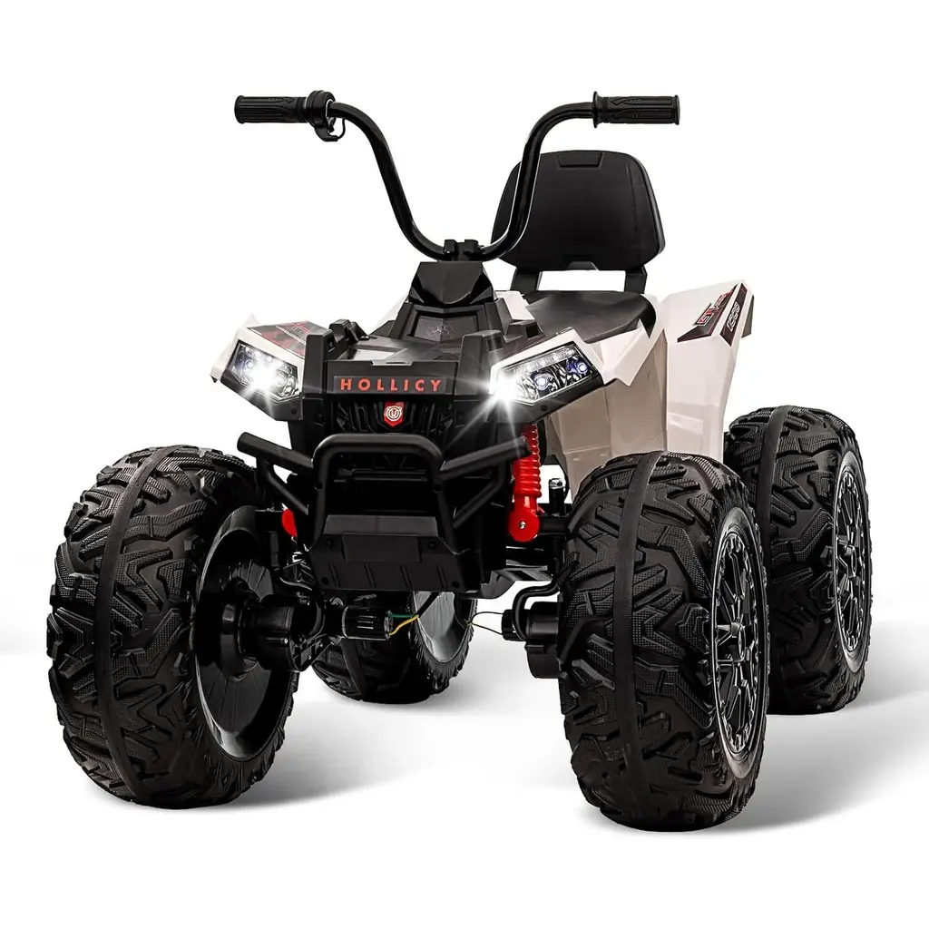 Key Features● Higher Protection with Slow Start Function: The ride-on ATV adopts advanced slow start technology that is intended to protect your kids during their manual driving time, in case that fast start may scare them While the wide seat which fits well with the kid's body shape takes the level of comfortableness into next level. ● High/Low Driving Speeds and Directions: Super easy operation frees your kids from tiring learning. After all, what your kids need to do is turn on the power switch, choose the high/low speed as well as forward / reverse direction, and then press the foot pedal. The horn sound and simulative acceleration sound buttons on the steering wheel bring a fabulous realistic driving experience. ● Cheering Music and Story for Infinite Fun: The electric ATV of rechargeable design gives your kids the ability to drive for a long time after a full charge. The power display reminds you to get it changed in time. And there are several music and stories, designed to cheer up your kids so that they will not feel bored. USB slot and Bluetooth function make more resources available further. ● Wear-Resistant Wheels for All-Terrain Drive: Equipped with wear-resistant wheels, the ATV allows your kids to ride on nearly all-terrain, such as beach, rubber track, cement road and more. Either indoors or outdoors. Besides, 4 wheels featuring a large diameter are supposed to support your kids with great stability. ● Ideal Toy to Accompany Your Kids: Let it accompany your kids and create cherished childhood memory. No need to worry about using reliability since it is delicately crafted with high-quality materials and certificated by ASTM.The electric ride on quad ATV is definitely popular with kids. Needless to say its cool ATV design will mobilize boys' and girls' enthusiasm which makes it their favorite toy in their spare time. Simple operation makes it super easy for kids to ride. There is high/low speed switch and a forward/reverse switch so that kids can choose any driving mode as per their preference to experience the infinite fun of driving. Several built-in music and stories bring added fun further. More you can also connect smart devices with a USB slot even Bluetooth to find your kids loved music stories and more. Besides its bright LED headlights lighten up the surroundings in the darkness. It is worth mentioning that this ride on ATV adopts advanced slow start technology. In this way you do not need to worry about if it is dangerous to scare your kids. Your kids are capable of skilled in driving it whether on the wood floor cement road rubber track or beach. If you are looking for such a product. Don't hesitate to buy it! Slow start shows perfect performance in driving stability for higher protection to kids Variable high / low speeds for different driving experience Move forward or reverse by means of the corresponding switch Music & stories bring much more fun in driving to dispel boredom Horn sound and simulative acceleration sound make for a realistic driving experience Color: White/pink/red/black/navy Material: PP iron Dimension: 42" x 25.5" x 29"(L x W x H) Net weight: 36.4 lbs Weight capacity: 77 lbs Speed: 2.8-5 km/h Battery: 12 V / 7AH Charger: 12 V Charging time: 8-12 Hours Running time: 1-2 Hours Suitable age: 3-7 Years Old Package includes: 1 x Kids ATV quad ride on car 1 x Adapter 1 x User manual