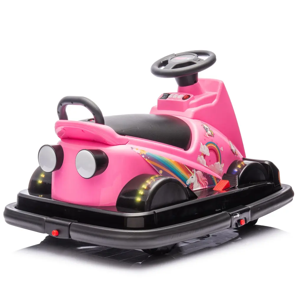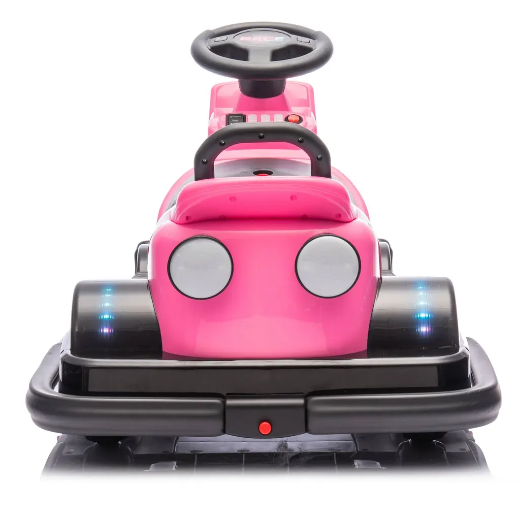 12v Kids Bumper Ride On Car With Rotate 360-Degree Spin, Collision Lights, Sound Effects, And Led Flow Wheels For Ages 3-5 - Pink