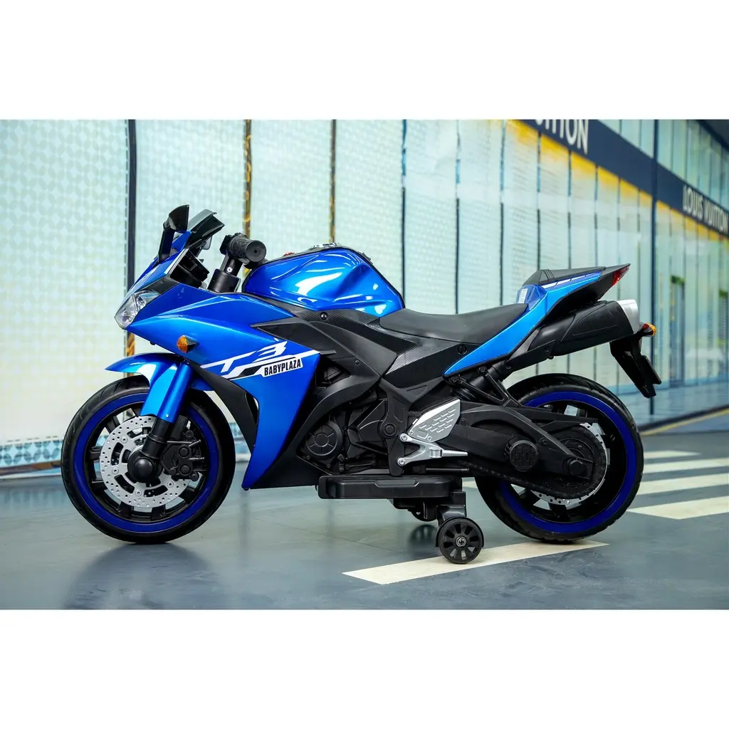 12v Kids Electric Motorcycle With Training Wheels, Manual Throttle, Foot Brake, Mp3, Lighting Wheels For Boys - Blue