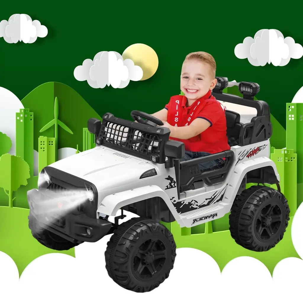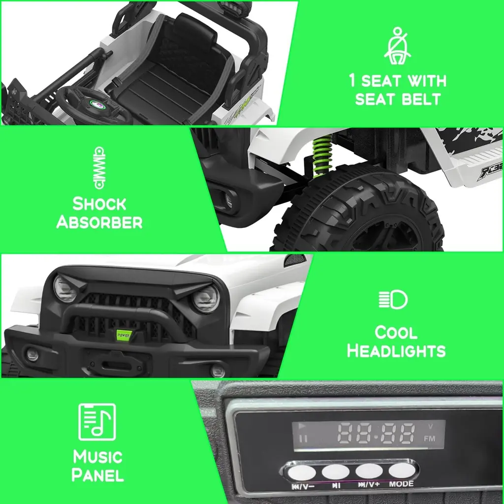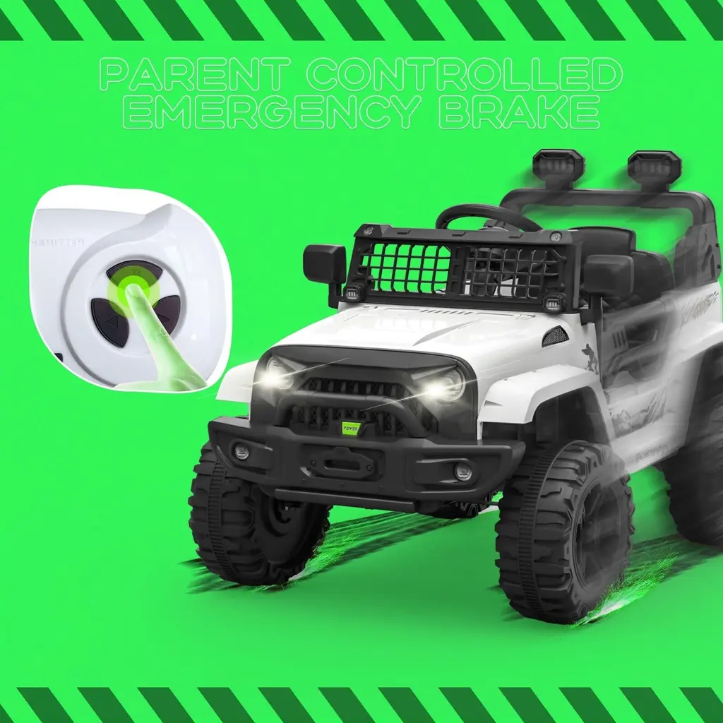 BEST GIFT FOR KIDS - Hetoy kids ride-on truck is made of safe material and equipped with multiple functions that can enrich your little one's life and enhance parent-child relationship. Certificated with ASTM and CPSIA, it can be a surprising Christmas gift or birthday gift for your children or grandchildren. MULTI-FUNCTION CONTROL CONSOLE - Easy to start by one key. This electric truck features bluetooth speaker, horn, headlights and high/low speed function, which enables the kids can enjoy the real driving experience with this car. DRIVING MODES AND REMOTE CONTROL MODE - Hetoy ride on truck has two driving modes designed to be suitable for kid of different ages, let your kid can play from 1 to 8 years old. 1 to 3 years old can use the remote control mode, enjoy the time of parents and children together. 3 to 8 years old can use the driving mode, so that kid can experience the fun of driving. SAFETY TRUCK - Hetoy ride on truck equipped with 1 seat and came with the a safety belt that can protect kids during driving. Parents remote control one button emergency brake function, can be in the emergency situation is very good to protect the safety of kids. POWERFUL 12V & REALISTIC DESIGN - Adjustable seatbelt, bright LED headlights, lockable doors, and grid windshield for off-road style, with a 12V motor and traction tires to ride on different terrains.