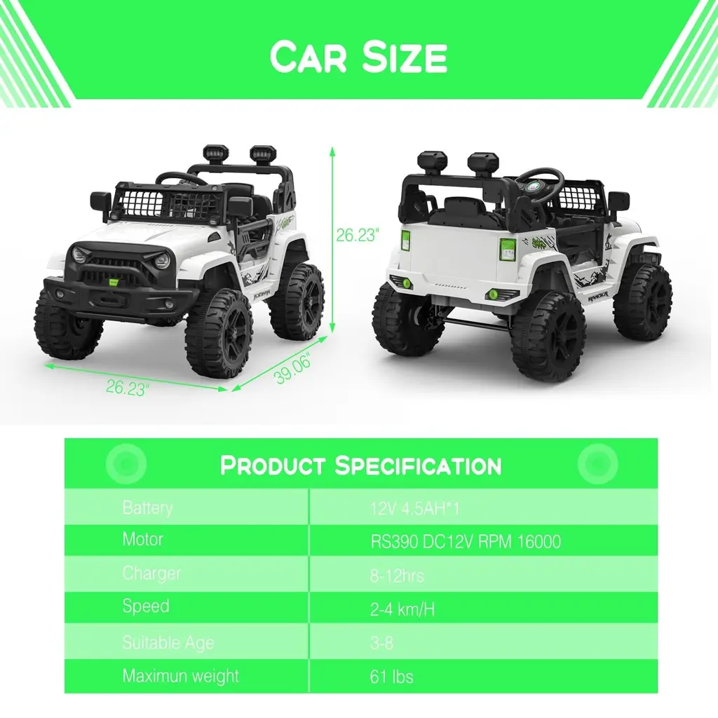 12v Kids Electric Vehicles Ride On Truck Car W/parent Remote Control - White
