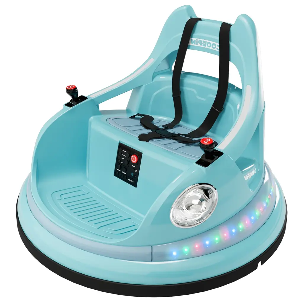 Product Overview:Introduce your child to a fun and interactive driving experience with the 12V Kids Ride-On Bumper Car. Designed for children aged 1.5 to 5 years, this electric ride-on car comes with a 2.4G remote control for parental supervision and a 360-degree spin capability for endless fun. Featuring dual-drive motors, omni-directional wheels, and a five-point safety belt, this bumper car offers a safe and thrilling ride. With LED lights, Bluetooth music, and anti-collision padding, it ensures a dynamic and secure playtime experience for your little ones.Product Features:Specifications:Suitable Scenarios:This bumper car is perfect for both indoor and outdoor use. It is ideal for playrooms, backyards, parks, and other flat surfaces where children can safely enjoy driving and spinning.Notes: