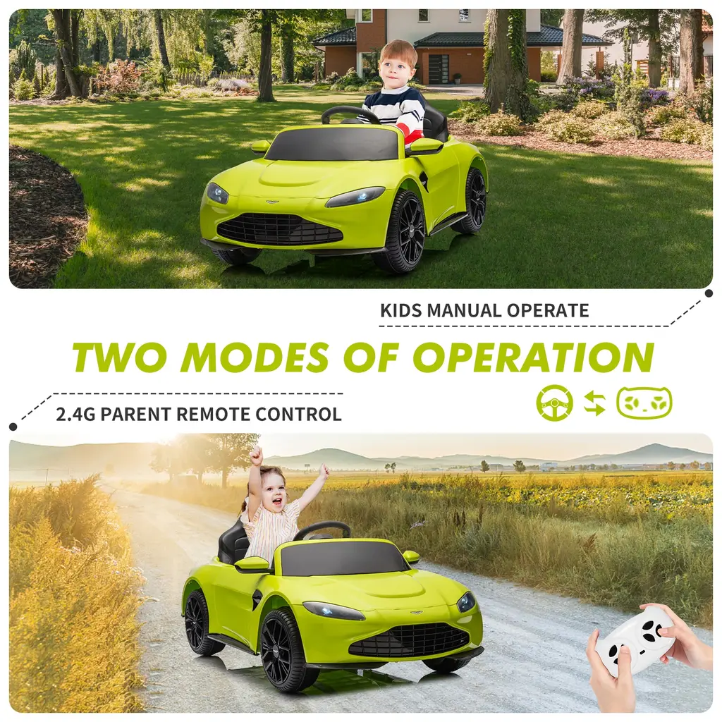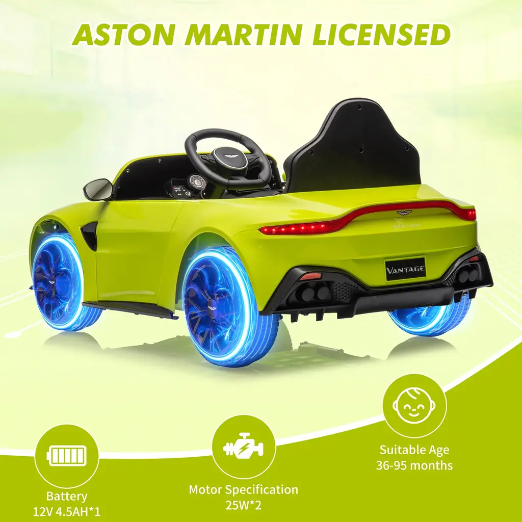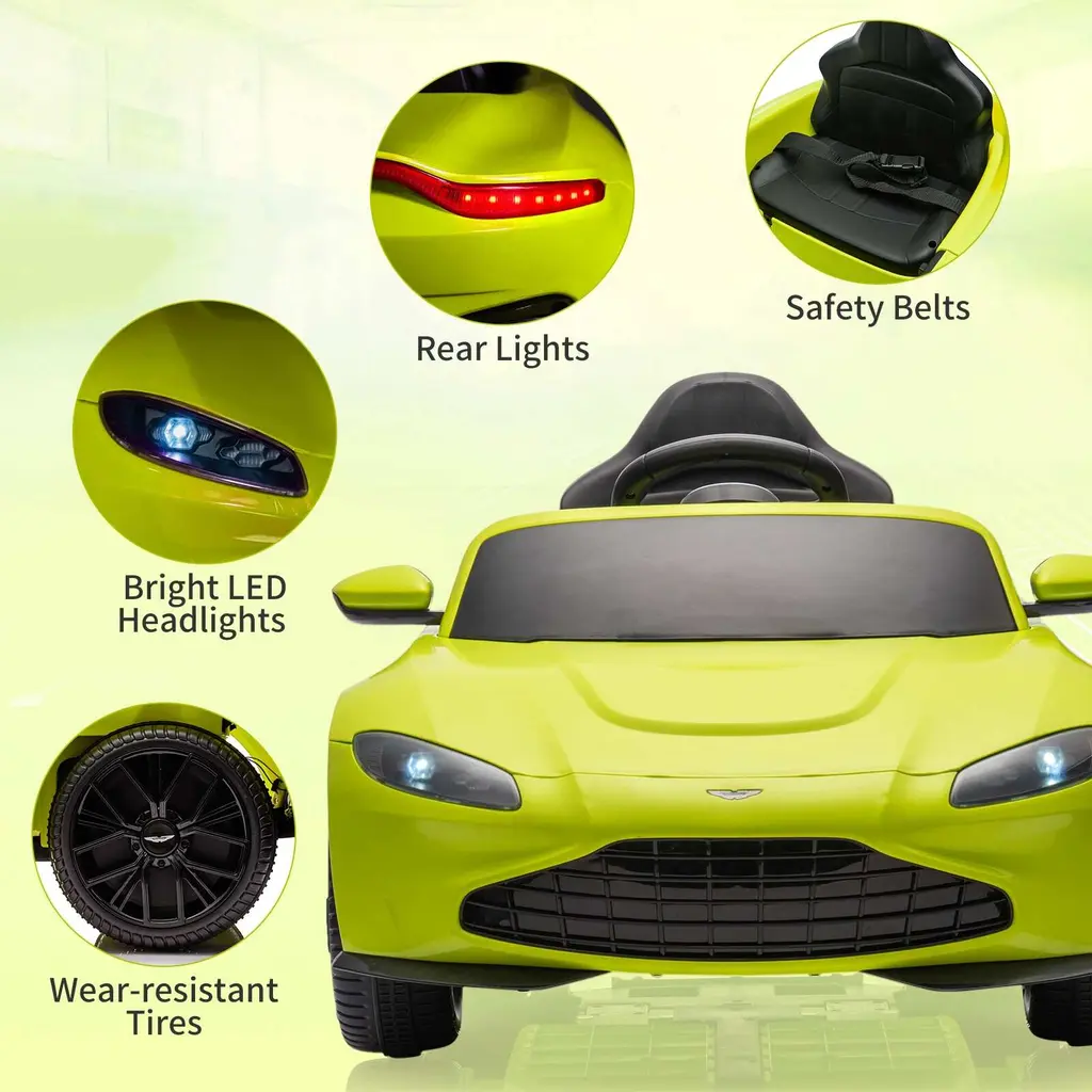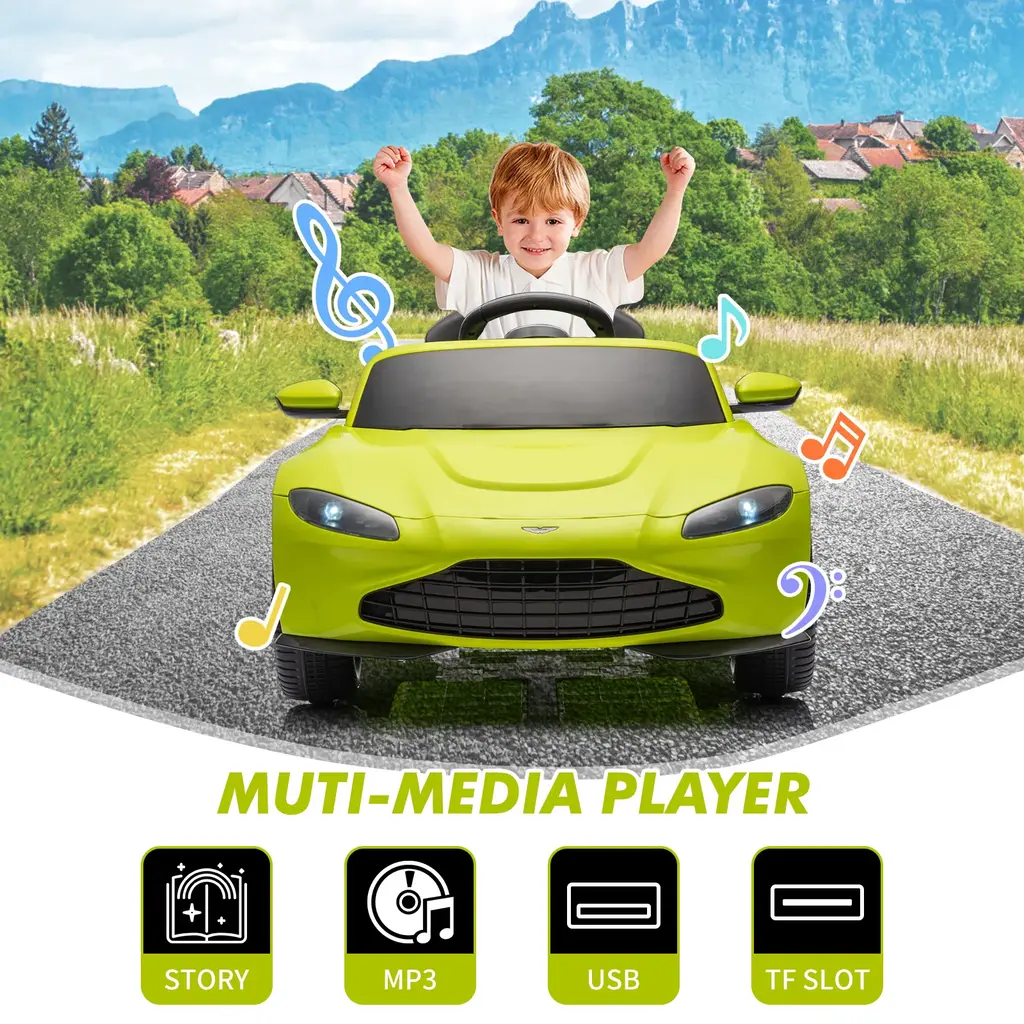 12v Kids Ride On Car Licensed Aston Martin Electric Sports Car Toy For Toddles Battery Powered Car With Remote Control - Green