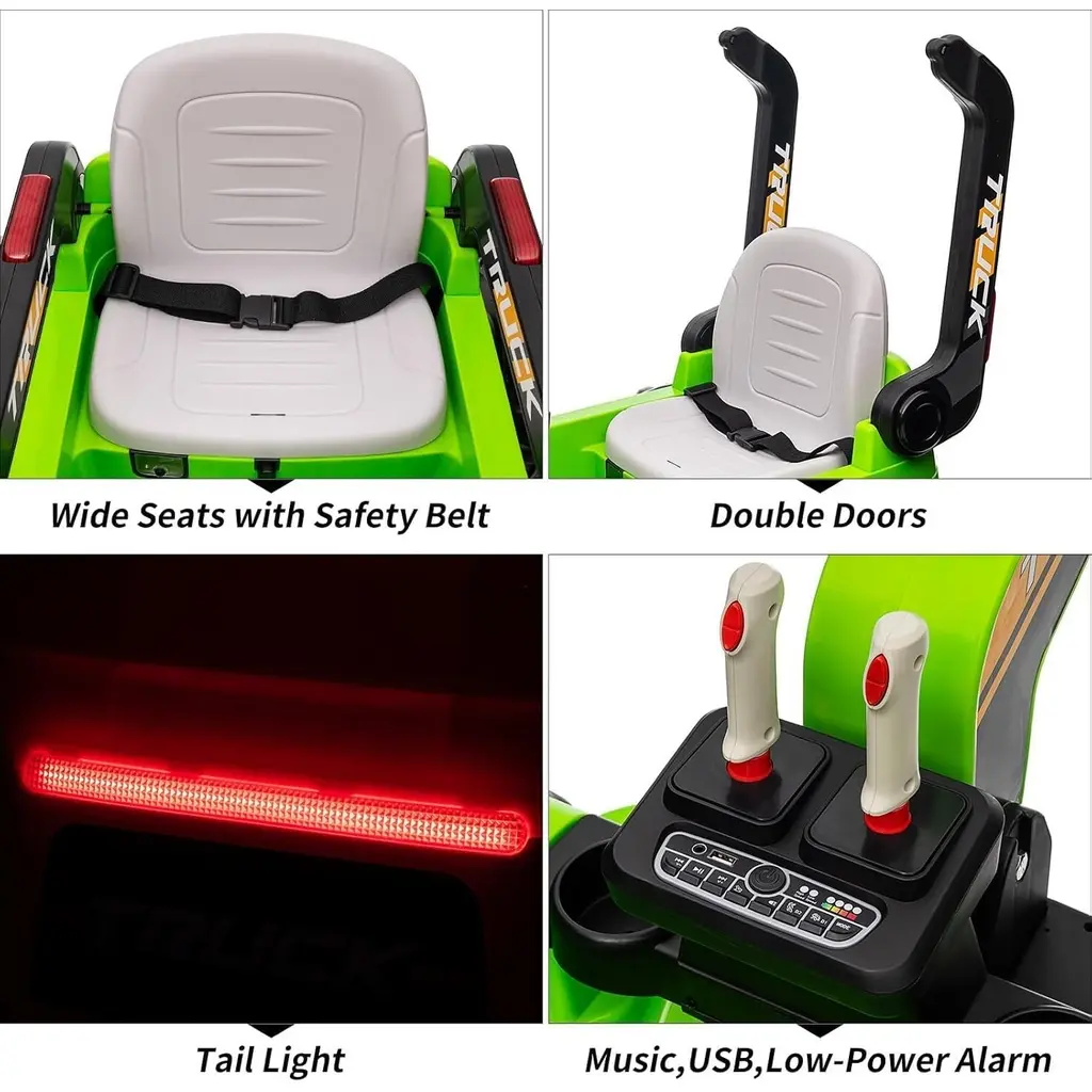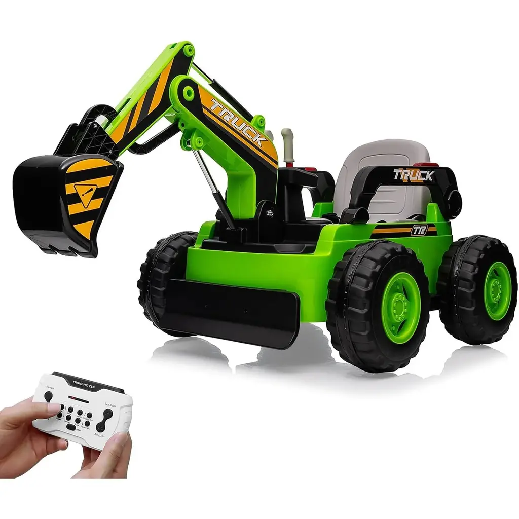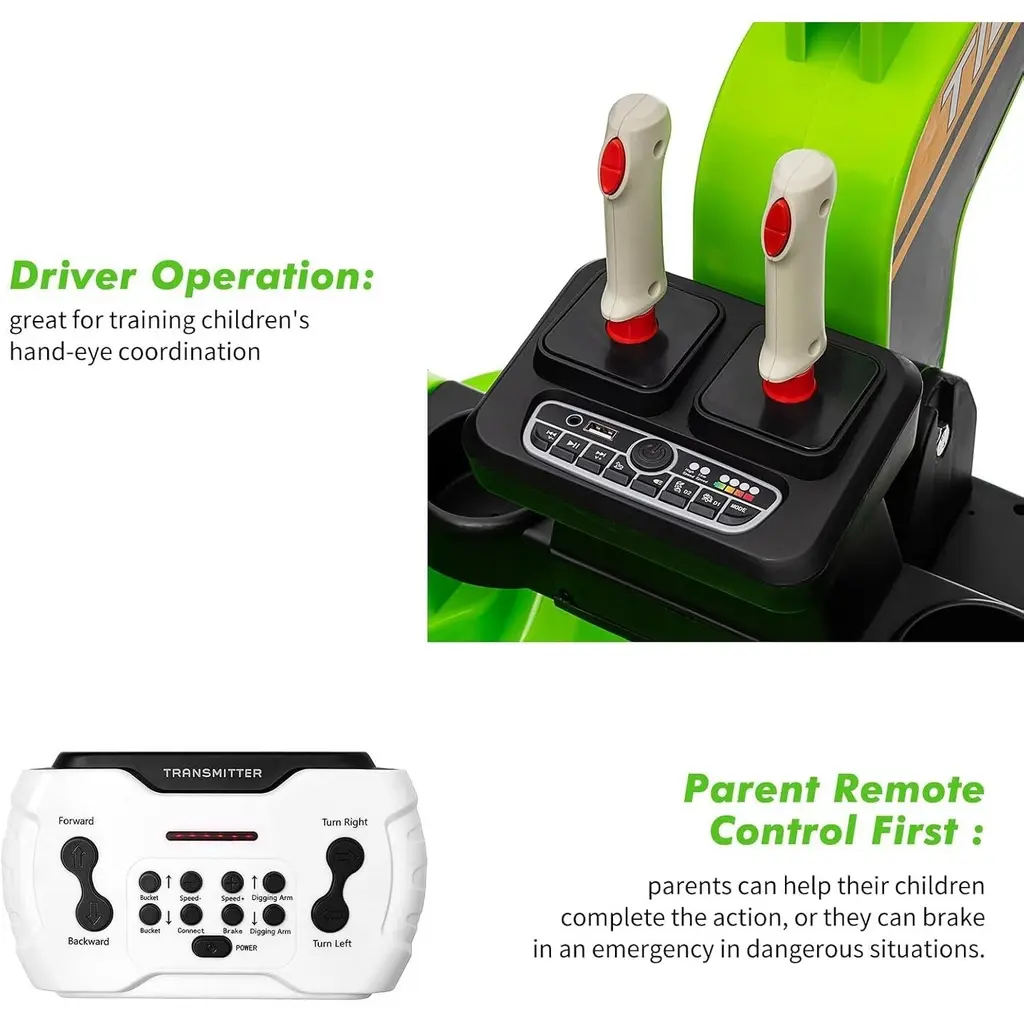 12v Kids Ride-On Excavator Digger Car, Electric Remote Control With Digging Arm - Green