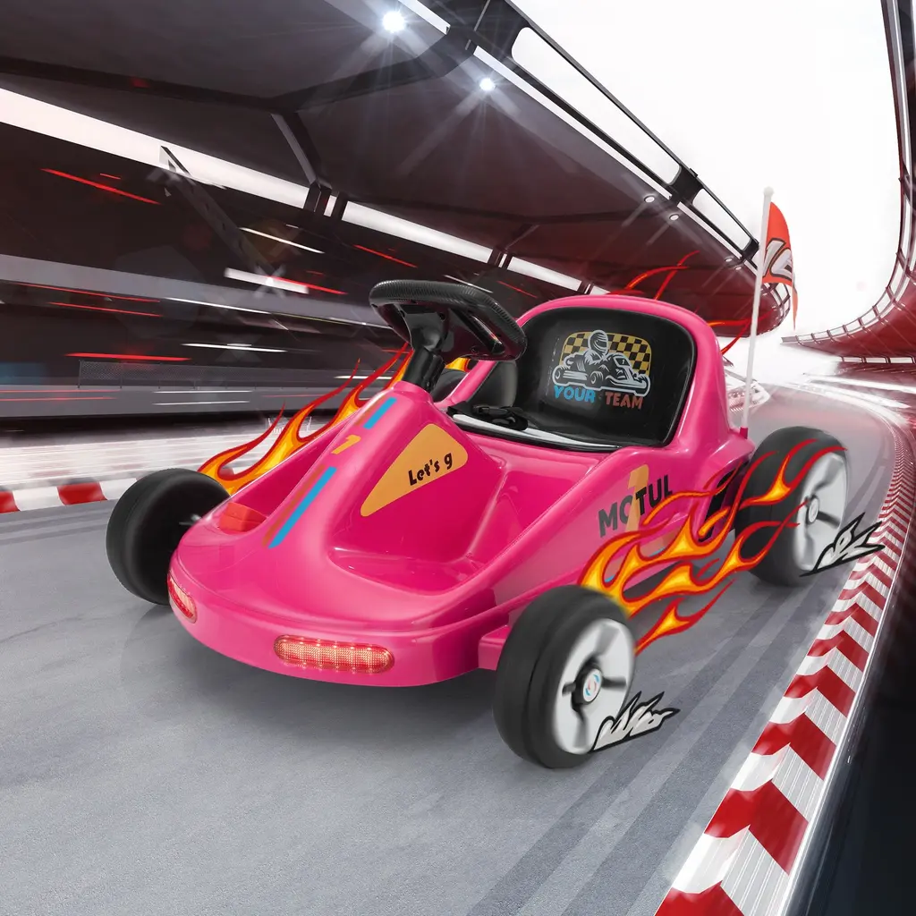 12v Kids Ride-On Go Kart With Led Lights, Bluetooth Music, Pedal Control And Parental Remote Control, For 3-8 Years Old - Rose Red