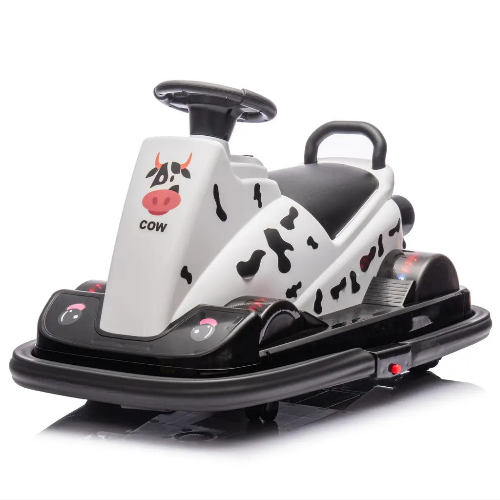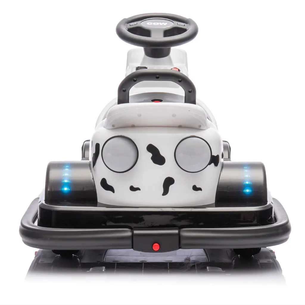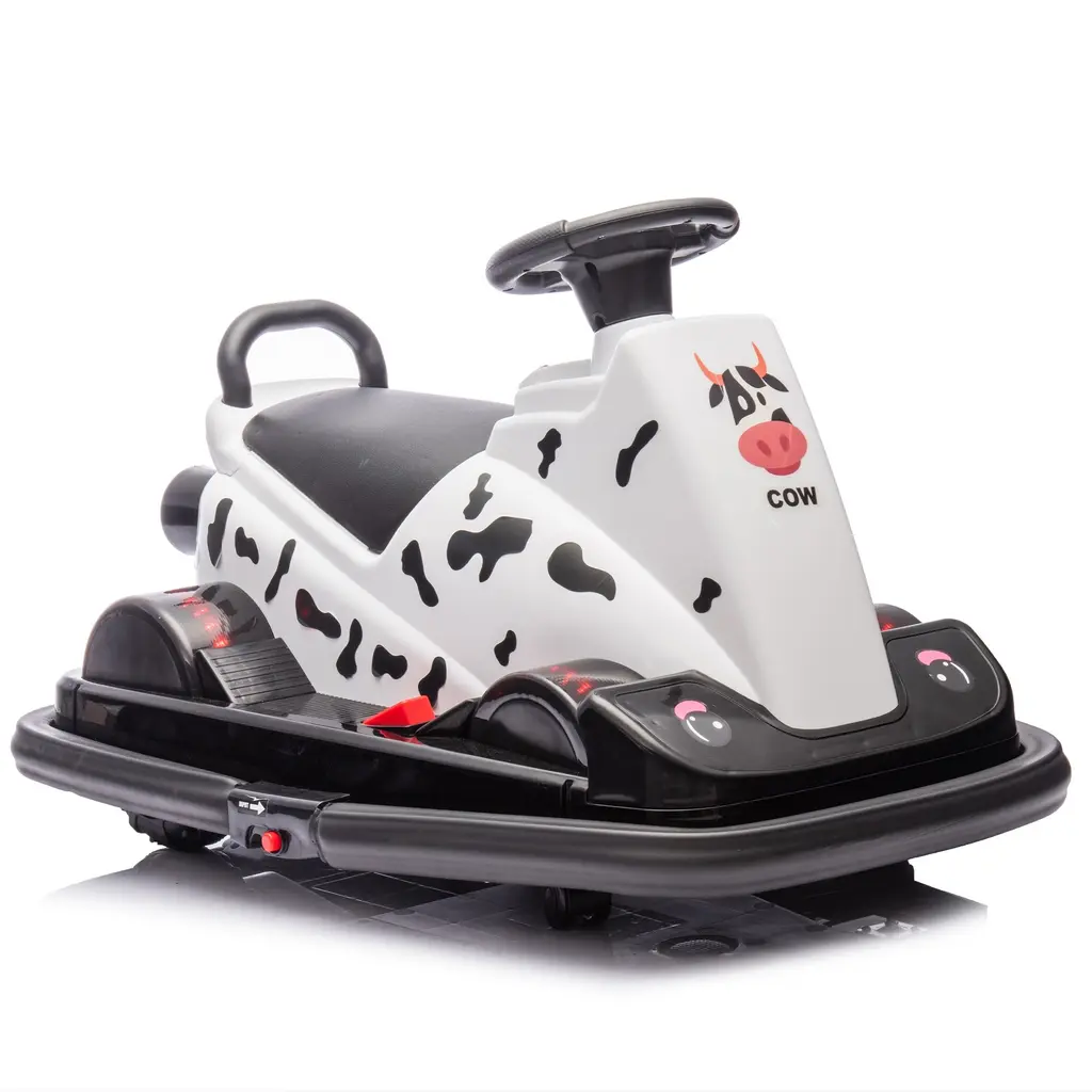Description:This 12V kids bumper car is a wonderful choice for children aged 3-5. It offers an exciting and safe play experience. The car's cute appearance design catches kids' eyes immediately. With its ability to rotate 360 degrees in place and the collision triggers that bring sound effects and lights, it adds endless fun. The four-wheel waterfall light makes it even more attractive. The built-in music and customizable stickers allow kids to personalize their rides. High-quality materials and exquisite workmanship ensure durability and safety. Let your kids enjoy countless hours of joy and adventure with this amazing bumper car!