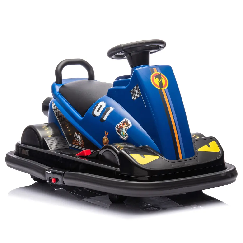 Product Overview: The 12V Kids Ride-On Motor Bumper Car is designed for children aged 3-5, combining fun, safety, and excitement. With a dual motor configuration, this bumper car offers strong power to quickly accelerate and navigate various play scenarios. It can rotate 360 degrees in place, providing maximum flexibility and allowing your child to show off their driving skills. The four wheels are equipped with dazzling LED lights that light up the car in dark or dim environments, adding a visual thrill to their play. This bumper car also features a horn, engine sounds, and built-in music, bringing an immersive racing experience right to your child's fingertips. Assembled dimensions: 29.76L x 21.06W x 18.74H inches. Weight: 14.40 lbs.Product Features: Specifications: Suitable Scenarios: This bumper car is perfect for kids aged 3-5 and can be used indoors or outdoors. It's great for birthday gifts, playdates, or everyday fun. Whether in the living room, playroom, or backyard, your child will enjoy hours of entertainment while developing coordination and motor skills. The LED lights and music add an extra layer of fun, making it an exciting ride for any child.Notes: This ride-on car is designed for children aged 3-5 and supports a maximum weight of 77.16 lbs. Always supervise children while they are using the car. The car is made from high-quality polypropylene and is durable and reliable for everyday use. Regular maintenance is recommended to ensure the car continues to function smoothly, and it should be stored in a dry, safe place when not in use. The battery provides ample playtime and should be recharged after each use.