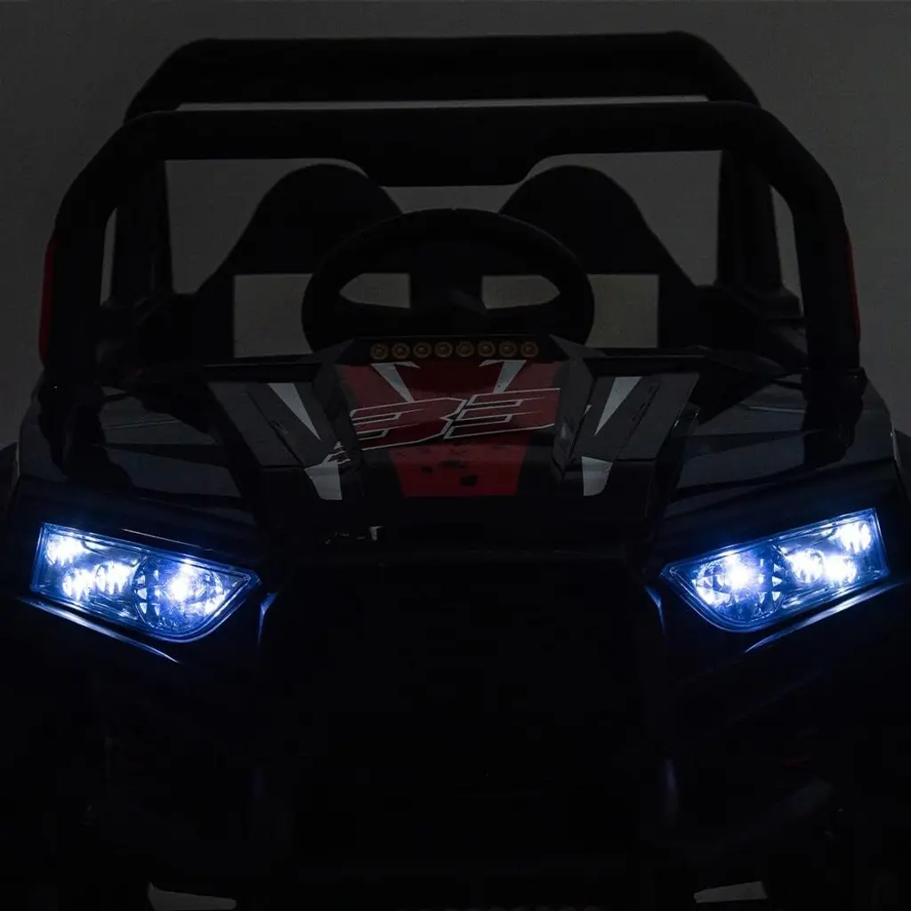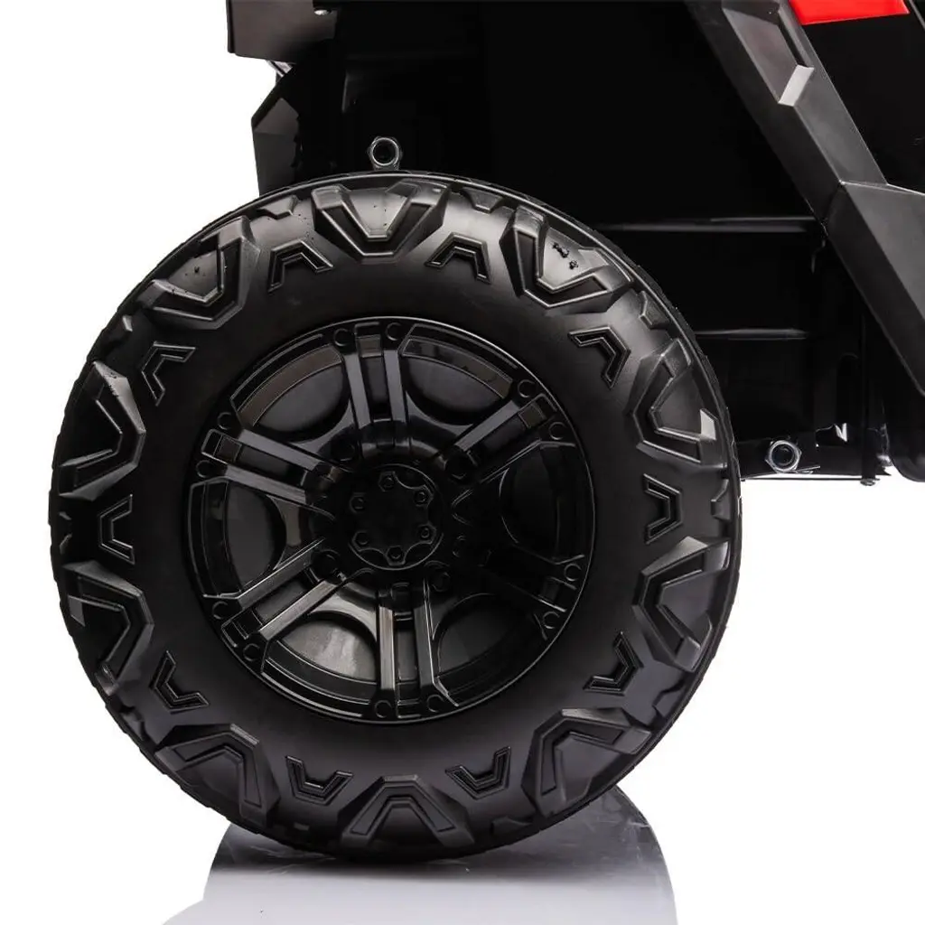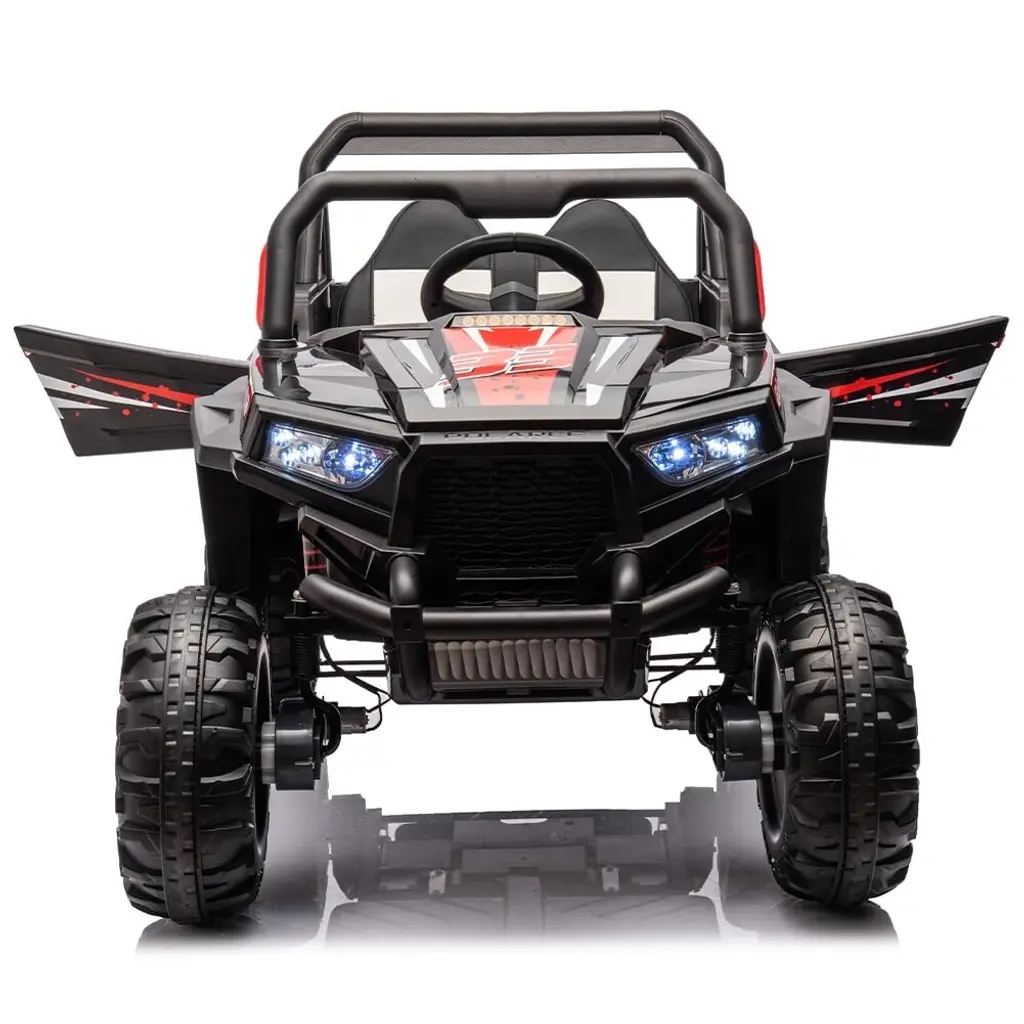 Feature:1. Battery specification: 12V7A x 1, 30W x 4, battery life 1 hour, charging 8-12 hours2. Self driving: Forward and backward, left and right turns, high and low speeds, front and rear sway, four wheel suspension3. Remote control: forward and backward/left and right turns/three speed regulation/braking/front and rear sway4. LED lighting, USB Bluetooth-compatible MP3 player, speaker sound and power display5. 2 point seat belt6. Main material of the product: PP+iron7. Load capacity: 30KG, recommended age: 3-8, seat size: 45CM wide, 33M high, 20CM long, speed: 8KM/HDescription:Name: Ride on carBattery: 12V 7AH x 1Motor:30W x 4Seat: Leather seat cushionLoad capacity:88lbsFunction: one button start,forward and backward, high and low speed, music, front light, power display, light control button, two doors can open, 2.4G R/C, four wheel absorber, seat beltPacking list: Ride on car x 1Note:Due to manual measurement, please allow 1-3 cm error, thank you.Due to screen and other objective reasons, there may be a certain color difference, please understand.【Luxury and Realistic Experience】This 12V children's ride-on car has realistic design details, including soft start, power display, bright LED lights, USB, MP3 music, electronic auxiliary steering wheel, openable door, high and low speed, these enhanced Features ensure kids get a realistic driving experience filled with endless fun and excitement!【2 Driving Modes】Children can use the steering wheel and pedals to operate the toys independently, allowing your children to have fun-filled adventures; For younger children, or if you want to increase your baby's interactivity, you can use the remote control to operate the toys.【Safe and Comfortable】This children's ride-on bike features a leather seat, ergonomic design, child-friendly PP material, sturdy body, equipped with adjustable seat belts, 4 wear-resistant wheels and a suspension system, even when driving It can also be smoother and more comfortable on rough roads. So rough. Suitable for all types of roads including asphalt, brick and concrete【Powerful Rechargeable Battery】Equipped with 12V rechargeable battery and 4 30W motors, it can be fully charged in 8-12 hours, providing your children with hours of playtime adventures. Your kids will have endless fun.【Perfect Gift】The overall dimensions of this kids ride-on bike are 46.07 L Children aged 8 years. Perfect as a Christmas gift or birthday gift for your child!