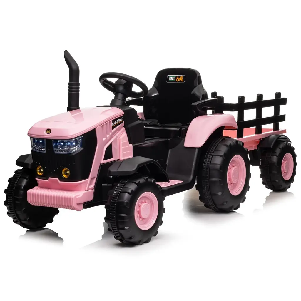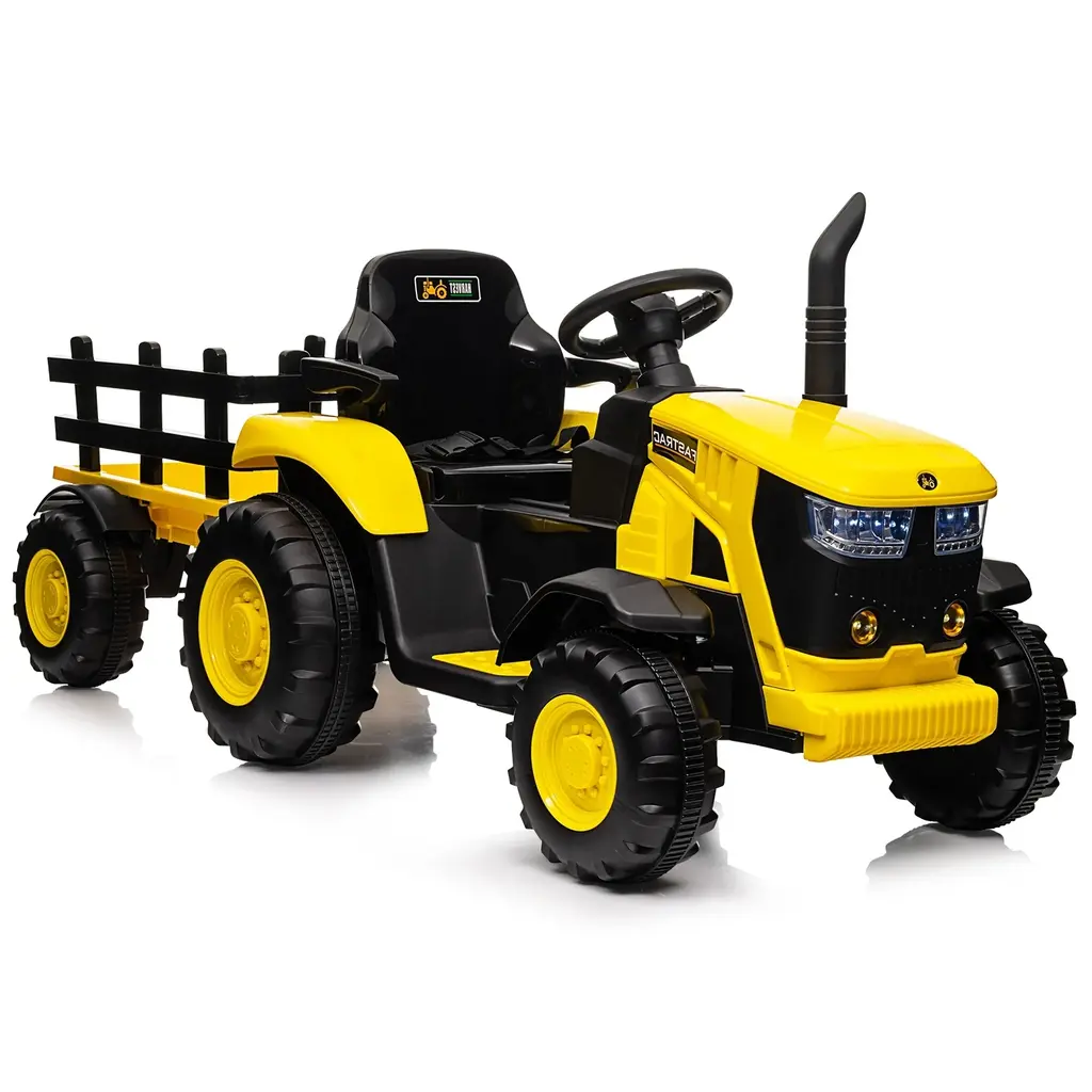 [ Detachable Trailer ] Includes a detachable trailer that can not only store some small toys and snacks but also allow kids to drive in the backyard or garden and carry tools and garden supplies for more fun. [ Outstanding Performance ] Benefited from a premium rechargeable battery with a large capacity and two powerful motors of 35W, this toy tractor can be driven fast even on complex terrains like grass, dirt, and gravel for a long time, bearing a maximum load of 66LBS. [ Premium Materials & Outstanding Performance ] Made of high-quality PP and iron, this ride-on tractor is sturdy and durable with a long service life. In addition, thanks to a large-capacity rechargeable battery and two powerful motors, our ride-on car will provide your kids with many miles of riding enjoyment. [ 3-Gear System ] Give your little one a hands-on driving experience. After pressing the start button, children can independently drive the ride-on toy car forward using the two gears and also steer it backward with low-speed gear. [ Built-in Fun ] Horns powered by air pressure make for cool sounds, while Bluetooth wireless technology and MP3 systems allow you to play your kids’ favorite music or story. Comes with a rechargeable battery with a charging time of 8-12 hours.