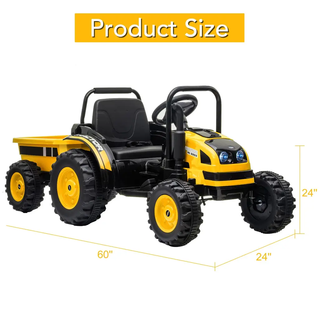 12v Kids Ride-On Tractor With Trailer - Yellow