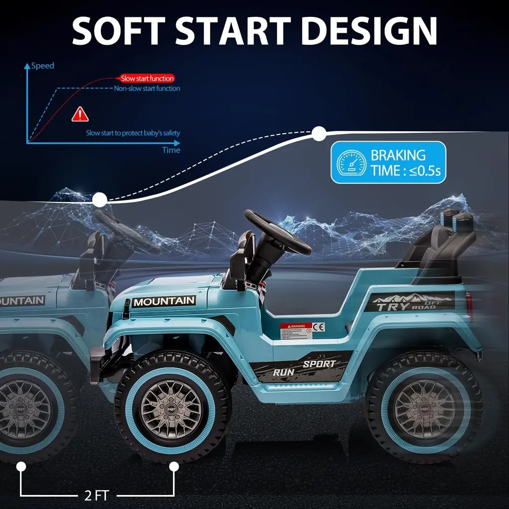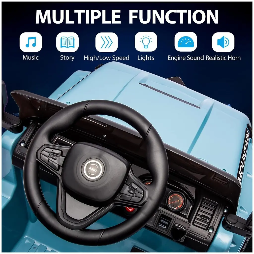 【Dual Modes】1. Remote Control: Effortlessly share the fun by controlling the ride-on truck with the included remote. 2. Self-Drive: Let your child develop driving skills and independence using the easy-to-use pedals and steering wheel. 【Exciting Features】Forward/reverse, 3-speed remote control for enhanced thrill. Built-in MP3 player, AUX, USB, and TF card options let kids enjoy music and stories during play, enriching their learning experience and making every ride a hilarity. 【Safe & Comfortable Rides】Non-slip, wear-resistant wheels and shock-absorbing suspension provide stable handling on various surfaces, from wood floors to concrete roads. Soft-start technology ensures gradual acceleration, preventing sudden jolts for young drivers' peace of mind. 【Powerful & Convenient】 Equipped with a reliable 12V rechargeable battery, offering strong performance and extended playtime. Safe charging port located at the steering wheel's lower right side for easy access. Always read instructions carefully before use. 【Stylish Ride-On Car】Perfect for toddlers aged 3+, this realistically designed toy car is made of sturdy steel and PP, ensuring long-lasting enjoyment. Dimensions: 38"L x 24"W x 24"H; Max Weight: 66 lbs.