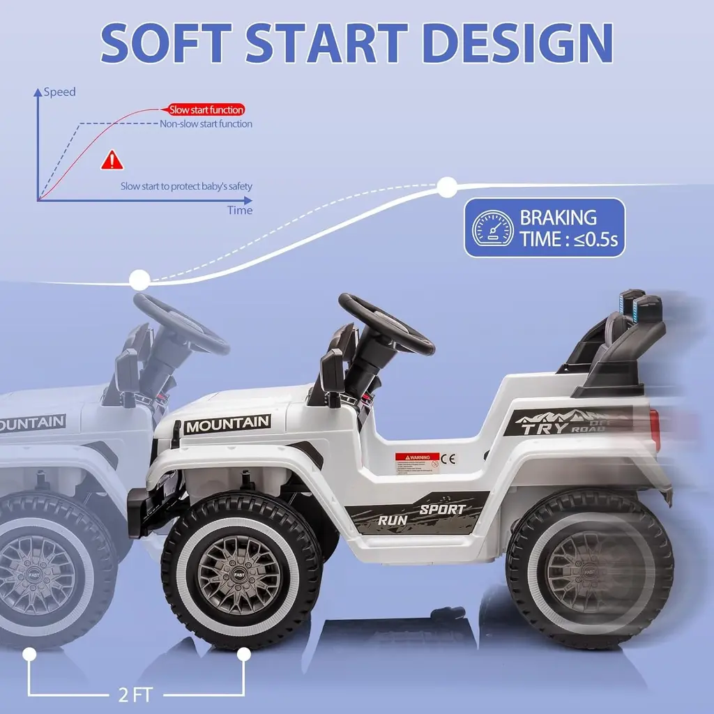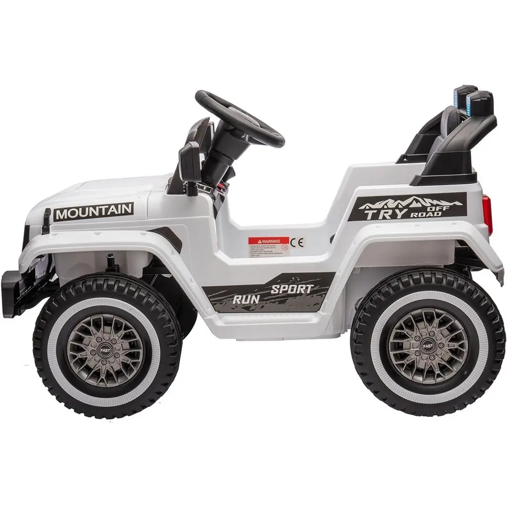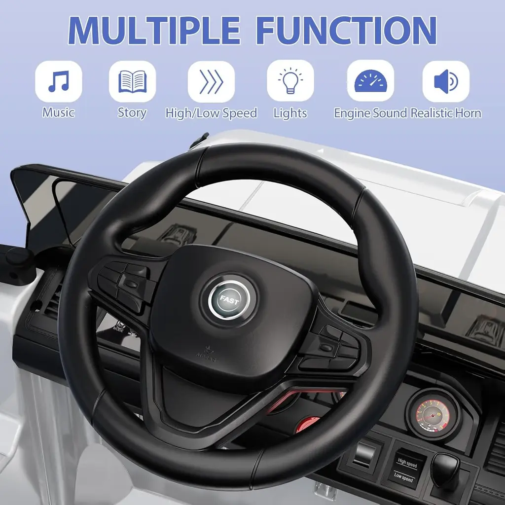 12v Kids Ride On Truck Car, Parent Remote Control, Twin 35w Motors, 3 Speeds, Led Lights, Music & Horn, Electric Vehicles Toy - White