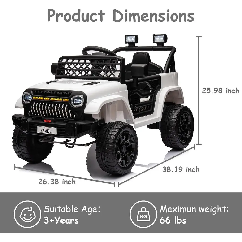 12v Kids Ride On Truck Electric Vehicle Battery Powered Car Toddles Ride On Toy For Boys Girls With Remote Control - White