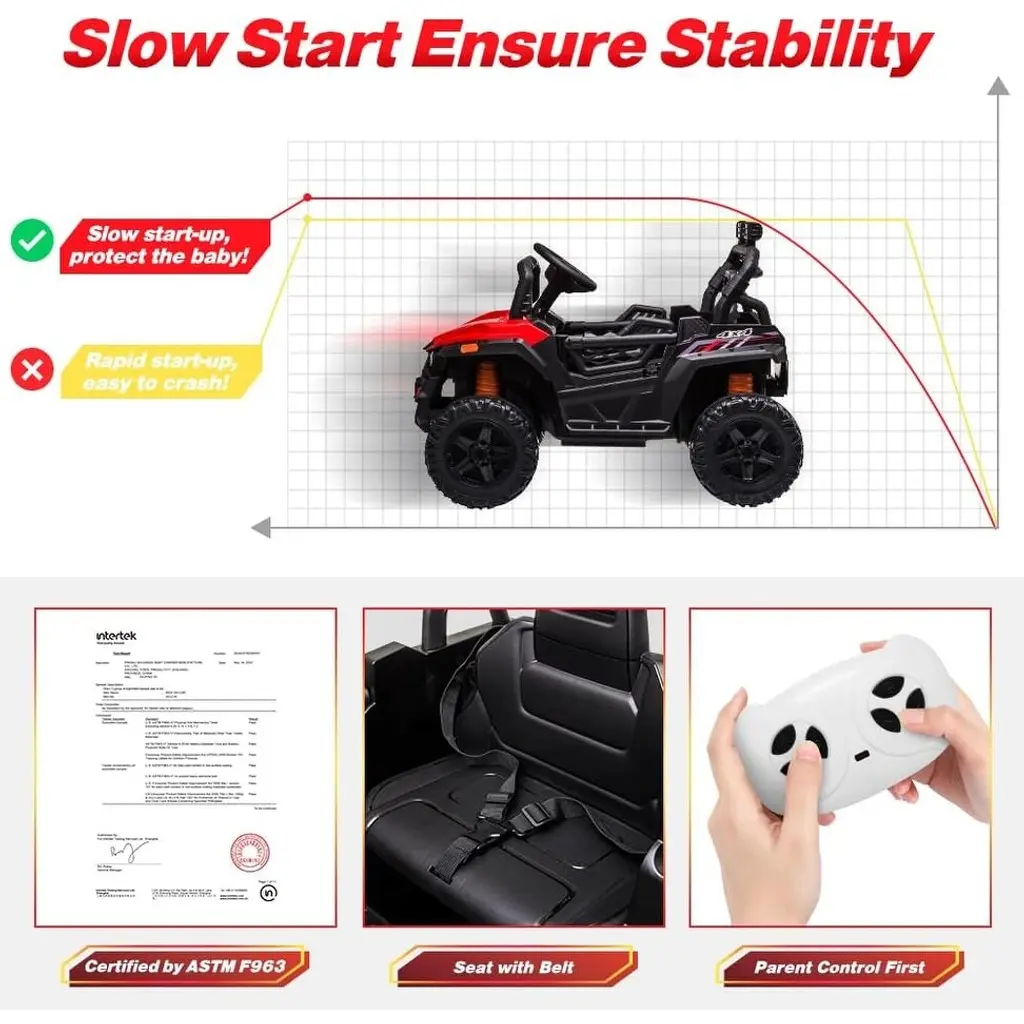 12v Kids Ride On Truck, Ride On Car Utv W/parent Remote Control - Red