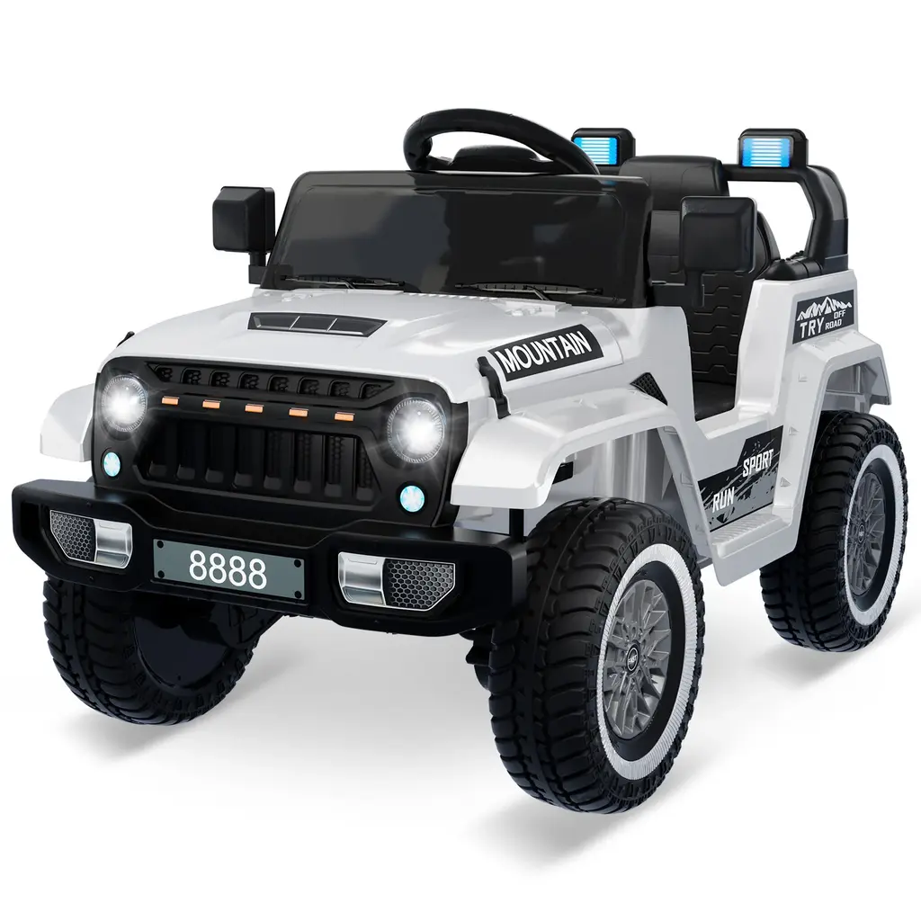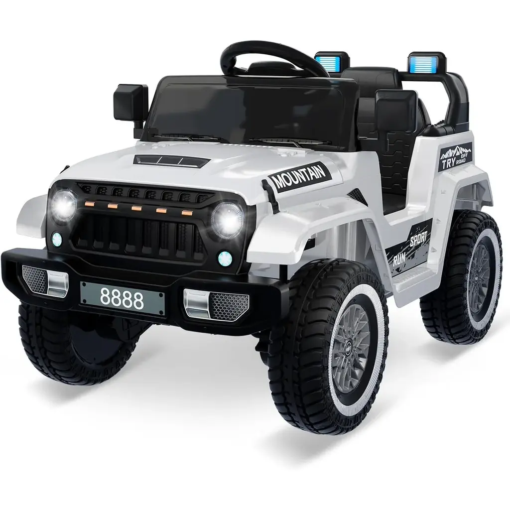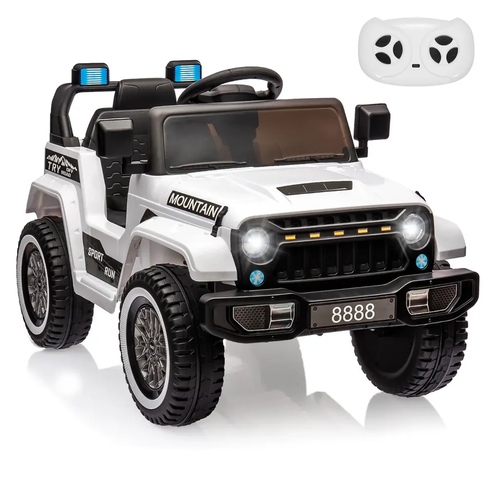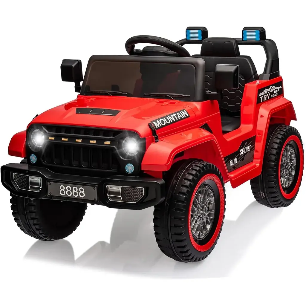 RIDE CAR WITH REMOTE CONTROL: This electric truck has 2 driving modes suitable for kids of different ages. As for younger aged 1-3, parents can use the remote control to operate the electric car, enjoy the time together. For kids aged 3-8, they can operate it by pedal, experience the fun of driving. 12V BATTERY POWERED RIDE TRUCK: This 12V ride on is powered by a 12V rechargeable battery, and driven by 2 x 35W motors, make this kids car provide children with an immersive and realistic experience at speed ranging from 1.25-3.1 mph. MULTI-FUNCTION CONTROL CONSOLE: Easy to start by one start switch. This kids electric vehicle features high/low speed function, music, horn, LED lights, which makes Children can enjoy the rear driving experience with this car. SAFETY FIRST: This ride-on truck has a safety belt that can protect kids during driving. When being in the emergency situation, with the soft brake/start technology and the emergency brake button, it is very perfect to protect the safety of kids. PERFECT GIFT FOR BOYS GIRLS: This 12v ride on toy for kids 3-6 is equipped with multiple functions that can enrich your little one's life and the parent-child relationship, and it can be a surprising gift for your lovely children or grandchildren.