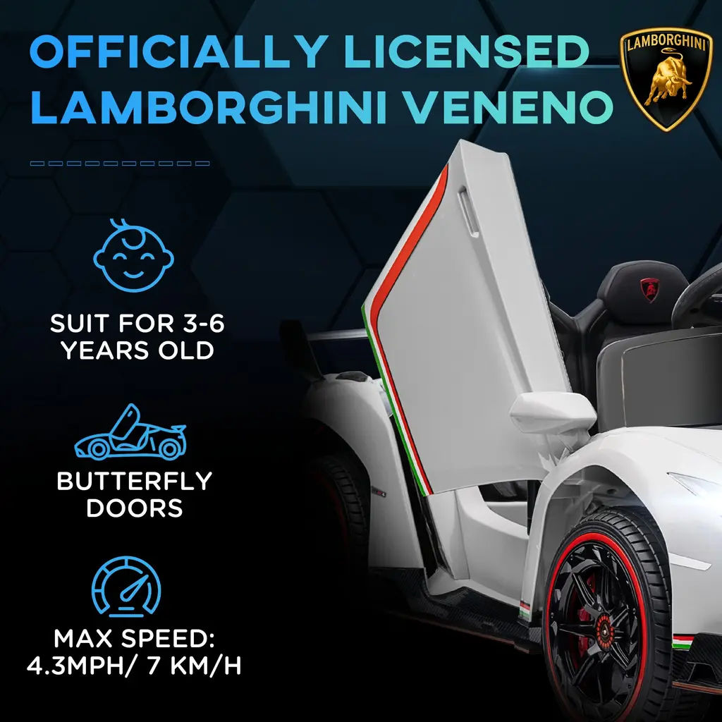12v Lamborghini Veneno Licensed Electric Ride-On Car - White With Bluetooth, Remote Control, Butterfly Doors & Suspension - White