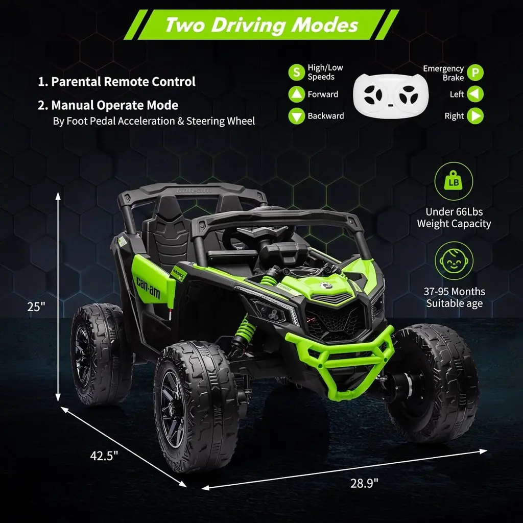 12v Licensed Can-Am Electric Off-Road Utv Car For Kids - Green