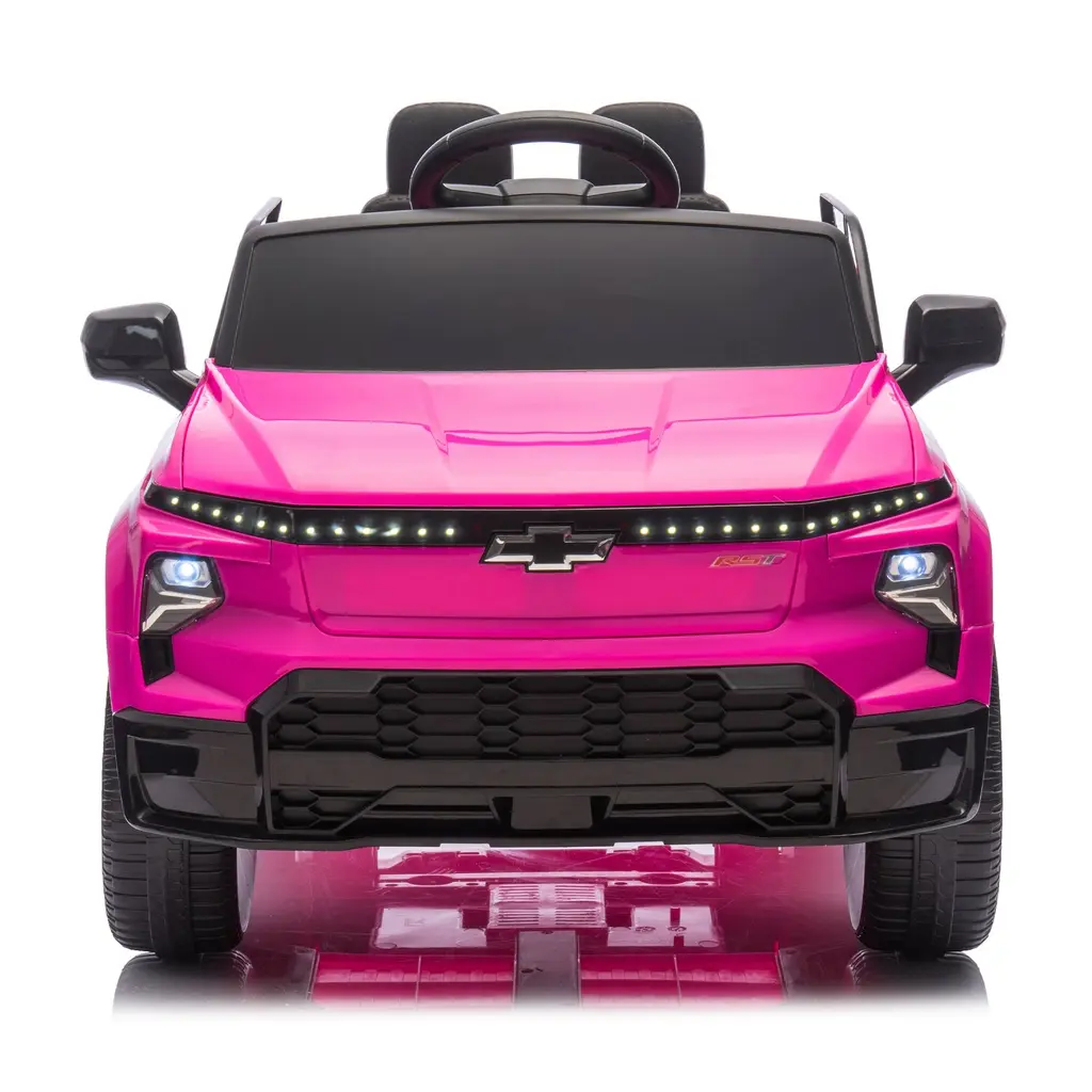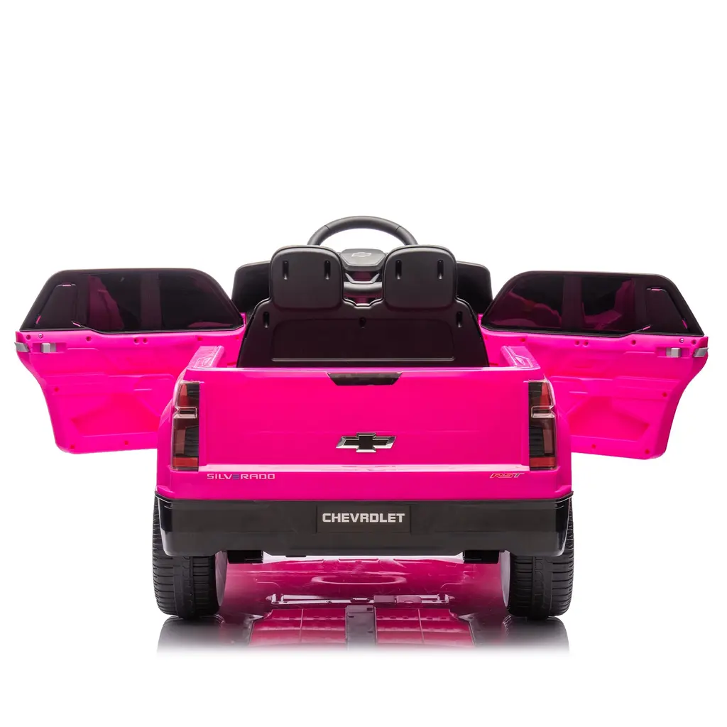 12v Licensed Chevrolet Silverado Ride-On Car For Kids, Bluetooth, Led Lights, Slow Start, 2.4g Remote Control For Ages 2-5 - Pink