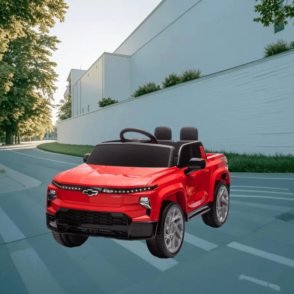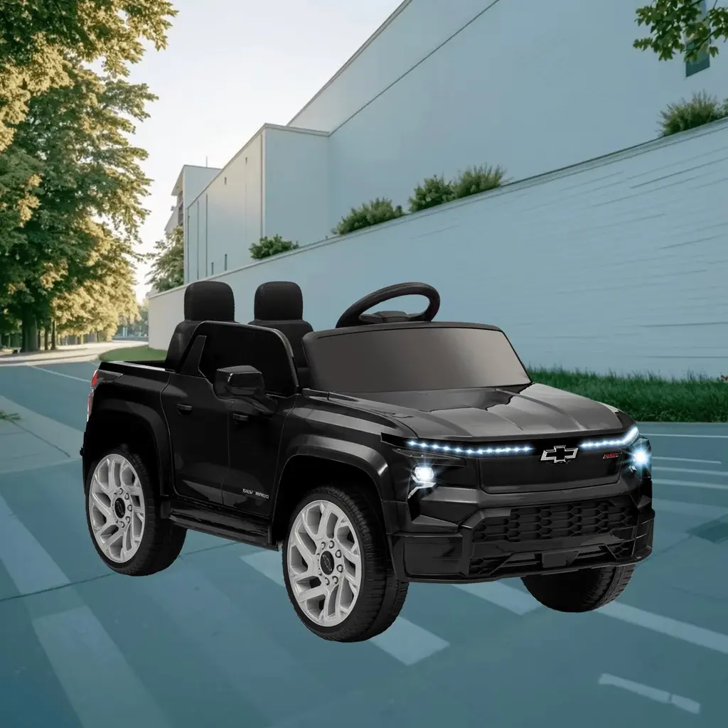 Overview: Let your child enjoy the thrill of driving a Licensed Chevrolet Silverado 12V Ride-On Car, a perfect gift for kids aged 2-5 years. This electric car is packed with realistic features such as a fully functional steering wheel, LED lights, and the ability to connect via Bluetooth for a personalized musical experience. Designed with safety in mind, this car comes with a slow start function, ensuring that your child's ride begins smoothly. With its durable build and advanced features, this ride-on car is built to entertain and engage for years to come. Key Features: