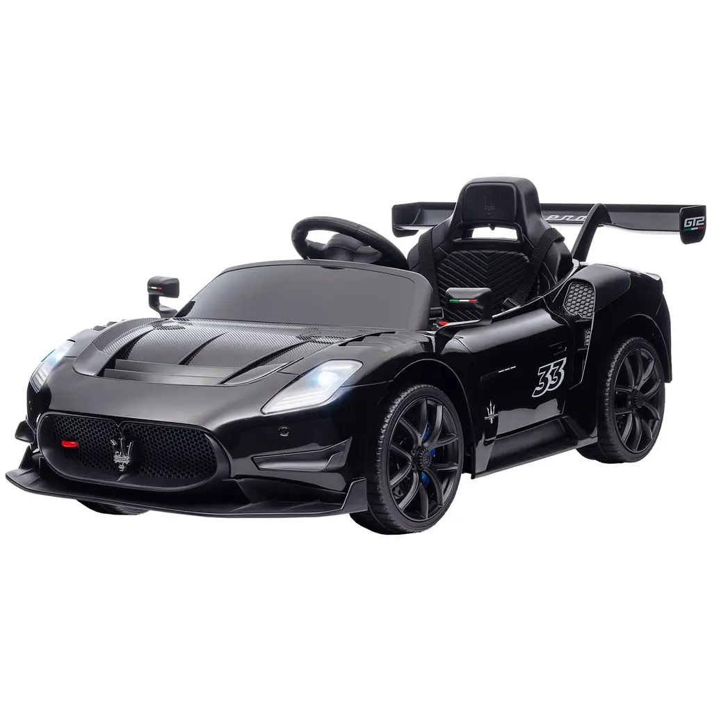 12v Maserati Gt2 Licensed Ride-On Car For Kids With Remote Control, Horn, Music, Shock Absorbers & Led Lights - Black - Black