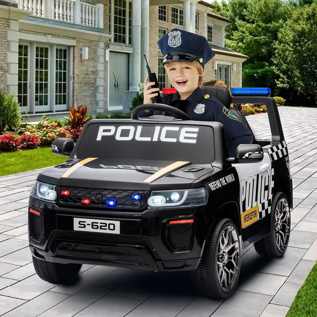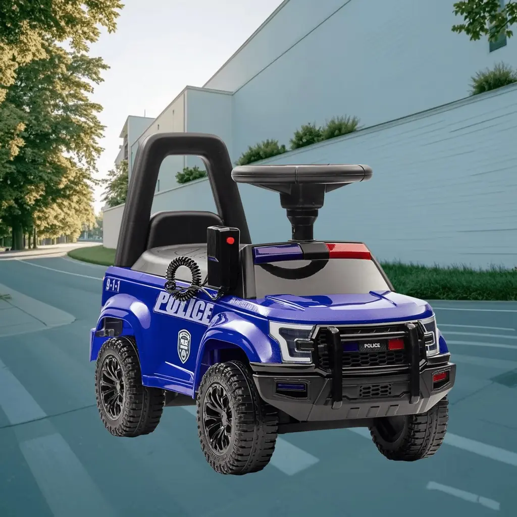 Overview: For kids who dream of driving a police car, the 12V Police Car Ride-on Truck is the perfect choice. With a 53" length, this large two-seater ride-on is designed for children aged 3 and up. It comes with a full array of features that will keep your little one entertained, including flashing siren lights, a horn, an MP3 player, and a remote control for parent-assisted driving. The wide, high-traction wheels and suspension system ensure that the ride is both smooth and safe, even on rough outdoor surfaces. Whether your child is playing independently or enjoying a shared experience with a sibling or friend, this ride-on offers hours of fun and excitement. Key Features: