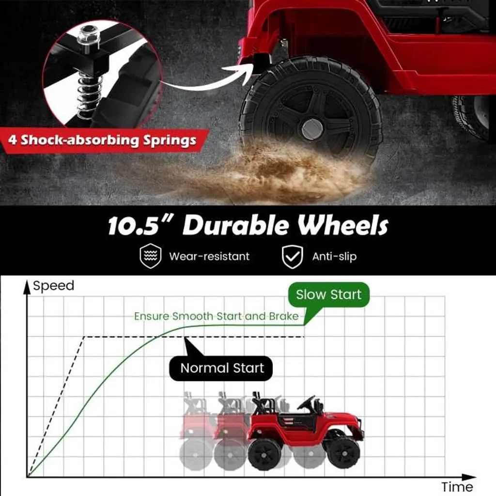 12v Ride On Kids Truck Remote Control Headlights And Fun Adventures - 39" X 26" X 26" - Red