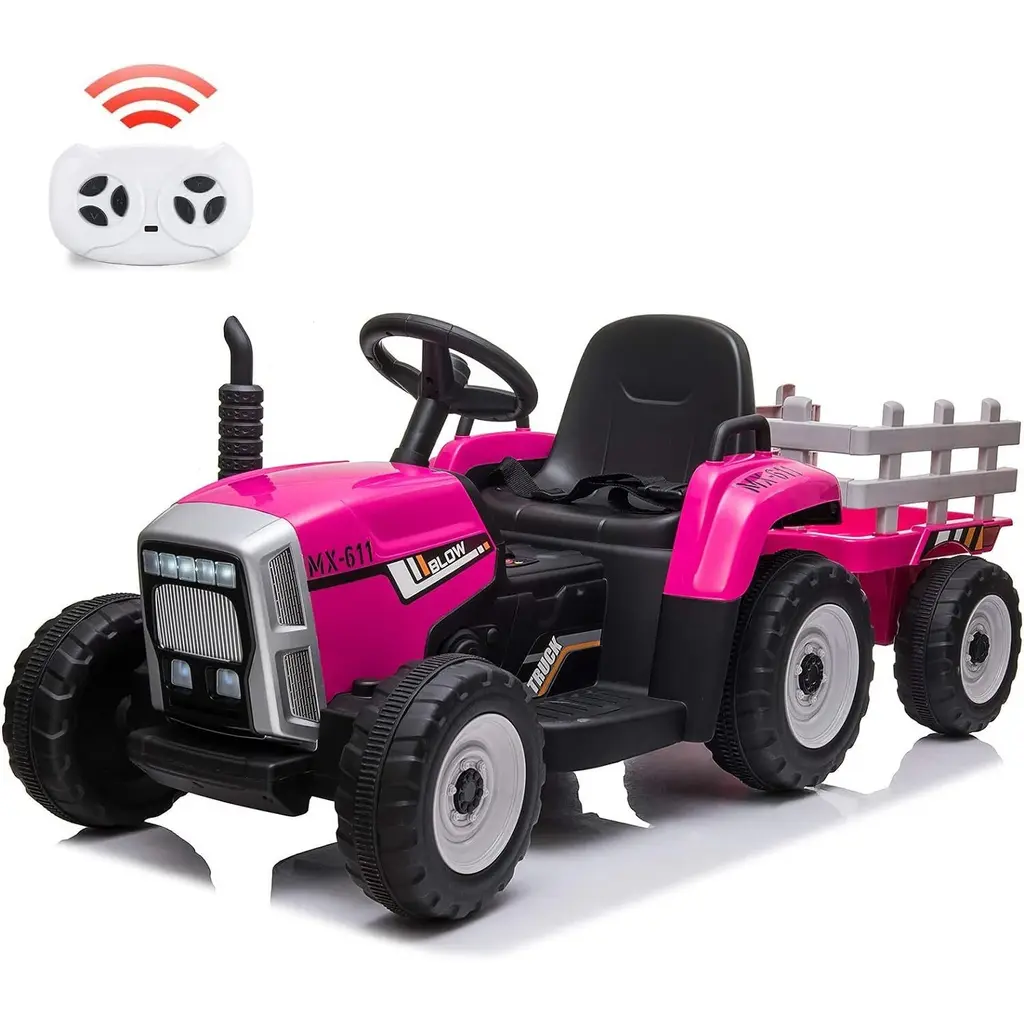 35W/25W EVA Tires Version-- The upgraded version of the ride on tractor has 35W/25W motor,7Ah Battery and EVA tires that are more powerful and shock-absorbing than Tread Tires. It takes only 20 minutes to assemble the car by following the installation video or instruction. Enhanced Performance-- This electric ride on car has a powerful 12V motor and traction tires that enable kids to ride on complex terrains such as grass and gravel. It also has a bright 7-LED headlights, a realistic 2+1 gear shift, adjustable belt,removable trailer for realistic styling. Built-in Entertainment-- The car comes with built-in music, stories,realistic engine sounds, and an air pressure horn that makes funny sounds. It also has a USB port,TF card slot and bluetooth that allow you to connect with your device to play MP3 audio. The dashboard has a battery indicator, making it easy to monitor the battery level. Manual & Parental Control-- The car has both manual and parental remote control options.The car allows kids to operate it by themselves using the foot pedal and steering wheel to choose ideal speeds.Parents can control the vehicle by remote control and enjoy the happiness of being together with more little baby. Safety Guarantee-- The car is certified by ASTM CPSIA and has a slow start function with a kids-friendly design. The car overall dimensions: 54"(L) x 20"(W) x 21"(H), a weight capacity of 66 lbs, and 1-1.5 hours runtime after 8-12 hours full charged.
