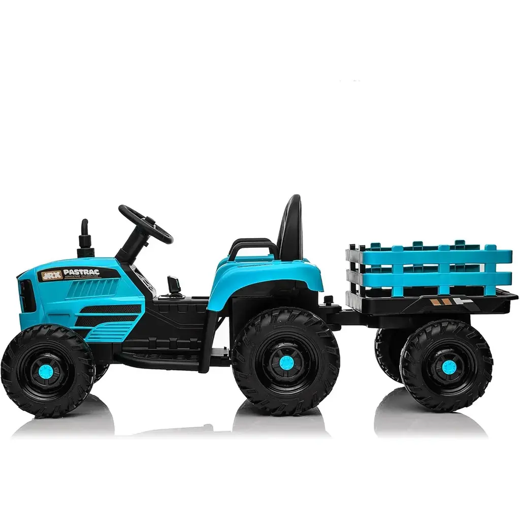 --Kids Electric Tractor Vehicles: This ride-on tractor move forward between 3 speeds. Features bright LED lights,built-in music and upgraded tires for shock absorption.--With Remote Control:The ride-on car comes with remote control, children can drive this ride on car manually, and parents can also operate this toy car via the remote control.--Ride On Tractor with Trailer: Your kids will delight in loading up the trailer and delivering toys, dolls, grass, straw, enjoy a leisure time. And you can remove the trailer to store conveniently.--Electric Vehicles for Kids: The ride on car is crafted with a durable PP plastic body. Made with fine workmanship, possess compact appearance and stable performance, can make sure durability and stability--Perfect Gifts: It is a perfect gift for kids at Birthday, Thanksgiving Day, Christmas, New Year, etc.Features:BATTERY:12V4.5AH*1MOTOR:30W*2Maxmum Load:66.14lbsCar speed:3-5 km/hApplicable age:3-6 years oldTest standards:ASTM,CPSIA,,MSDS,CPCFUNCTION:Electron assisted steering wheelForward and backwardRC/Three speed adjustablePower display,slow start/USB,MP3,BluetoothLED light/Rear wheel suspensionTwo-point safety belt,Parent ControlSmall central controlLow battery alarm