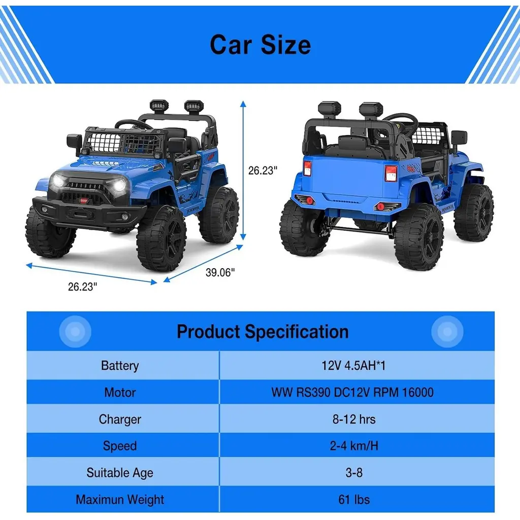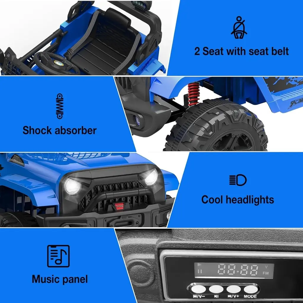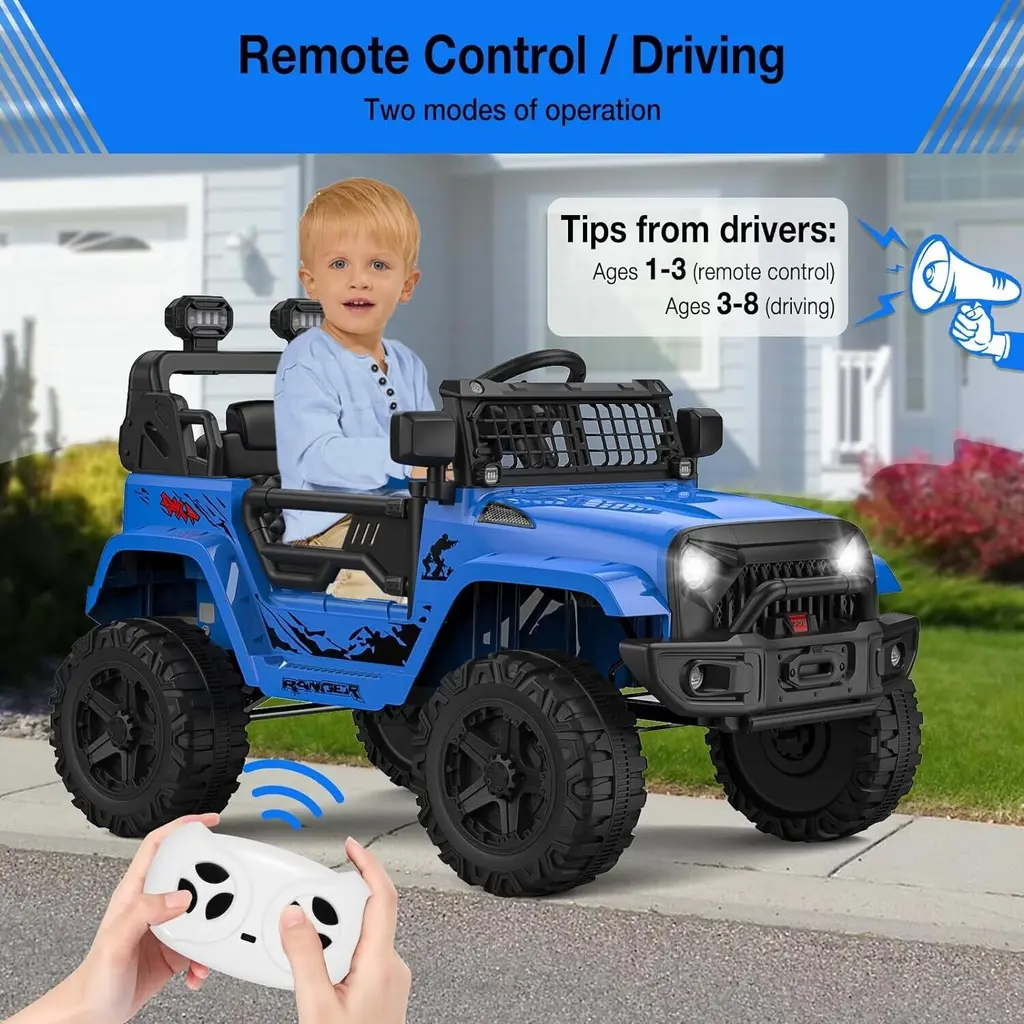 DRIVING MODES AND REMOTE CONTROL MODE: Hetoy ride on truck has two driving modes designed to be suitable for kid of different ages, let your kid can play from 1 to 8 years old. 1 to 3 years old can use the remote control mode, enjoy the time of parents and children together. 3 to 8 years old can use the driving mode, so that kid can experience the fun of driving. MULTI-FUNCTION CONTROL CONSOLE: Easy to start by . This electric truck features , horn, headlights and high/low speed function, which enables the kids can enjoy the real driving experience with this car. SAFETY TRUCK: Hetoy ride on truck equipped with 1 seat and came with the a safety belt that can protect kids during driving. Parents remote control one button emergency brake function, can be in the emergency situation is very good to protect the safety of kids. POWERFUL 12V & REALISTIC DESIGN: Adjustable seatbelt, bright LED headlights, lockable doors, and windshield for off-road style, with a 12V motor and traction tires to ride on different terrains. BEST GIFT FOR KIDS: Our kids ride-on truck is made of safe material and equipped with multiple functions that can enrich your little one's life and parent-child relationship. Certificated with ASTM and CPSIA, it can be a surprising Christmas gift or birthday gift for your children or grandchildren