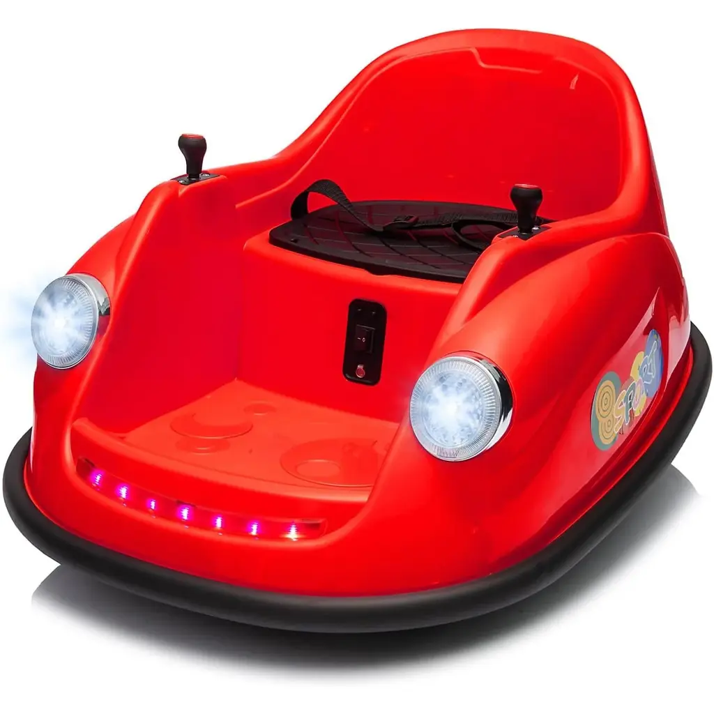 Product Features【Stylish Bumper Car】: This electric bumper car takes a distinctive snail look, which provides a safe ride-on space for kids to sit and can run at a maximum speed of 1.86 mph.【Safety Assurance】: Made of premium PP material, this sturdy race car is durable enough for outdoor use. The soft bumper and seat belt guarantee kids' safety while bumping and riding.【2 Control Modes】: Kids can drive with 2 joysticks and rotates 360 degrees at their will. For safety concerns, parents can guide them with the remote control.【Riding for Fun】: Easy-to-start press button, built-in Music, flashing Lights and 2 powerful 12V motors offer joyful bumping experiences for kids.【Perfect Gift for Kids】: Easy to install and use, this ride-on is a wonderful birthday or festival gift for kids aged 3-8 years old, helping create an indoor amusement park.Specifications:Materials: PPProduct Size: 26.77"L x 26.77 "W x 18.11"HMotor:12V(18W) x 2Battery: 6V 4.5AH x 2Charger: Input: 120V AC 60HZ; Output: 12V DC 1000MARecommend Ages: 3-8 Years OldWeight Capacity: 66 lbsNet Weight: 12 lbs