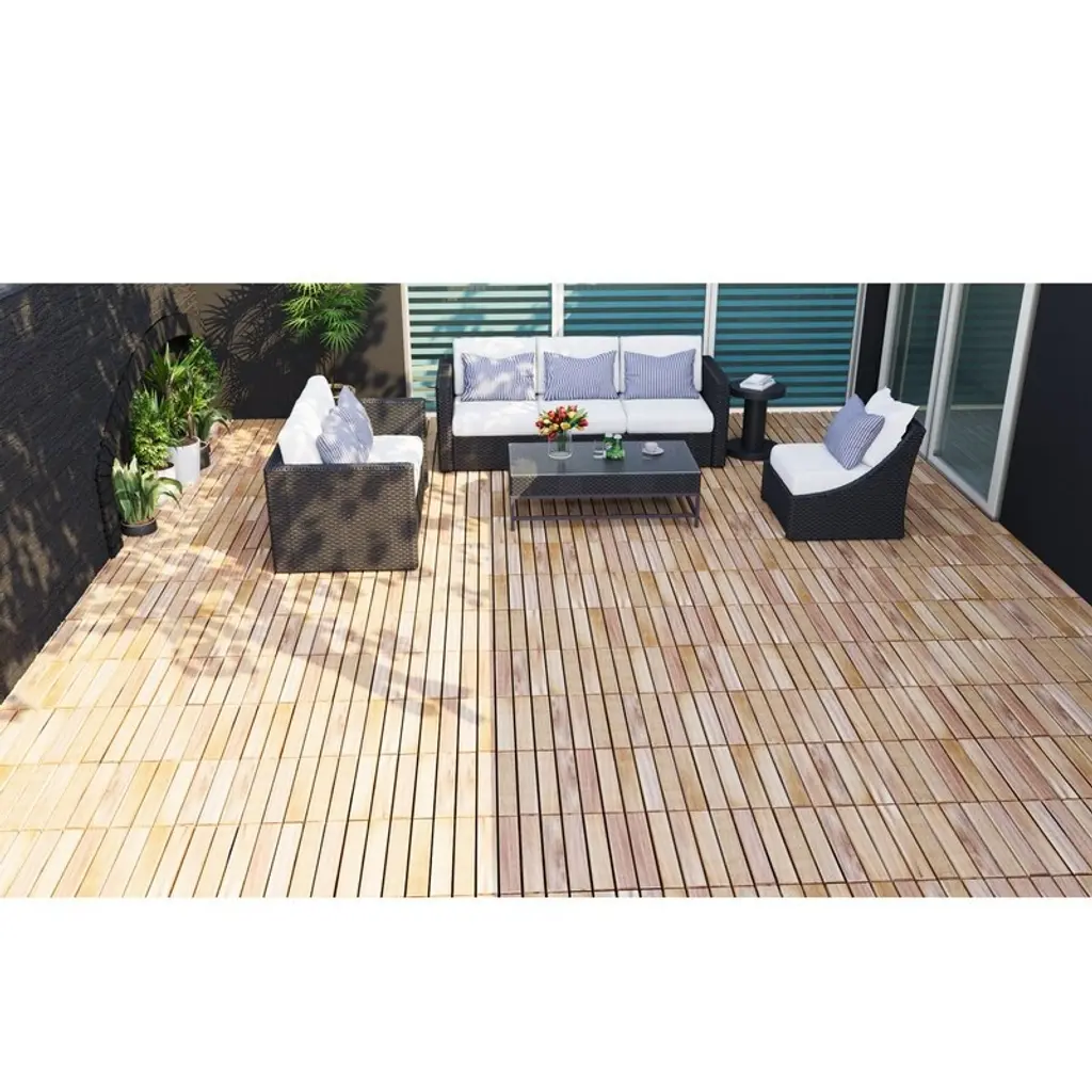 12"x12" Acacia Wood Interlocking Deck Tiles, 6-Slat Pattern - Natural - 10-Pack