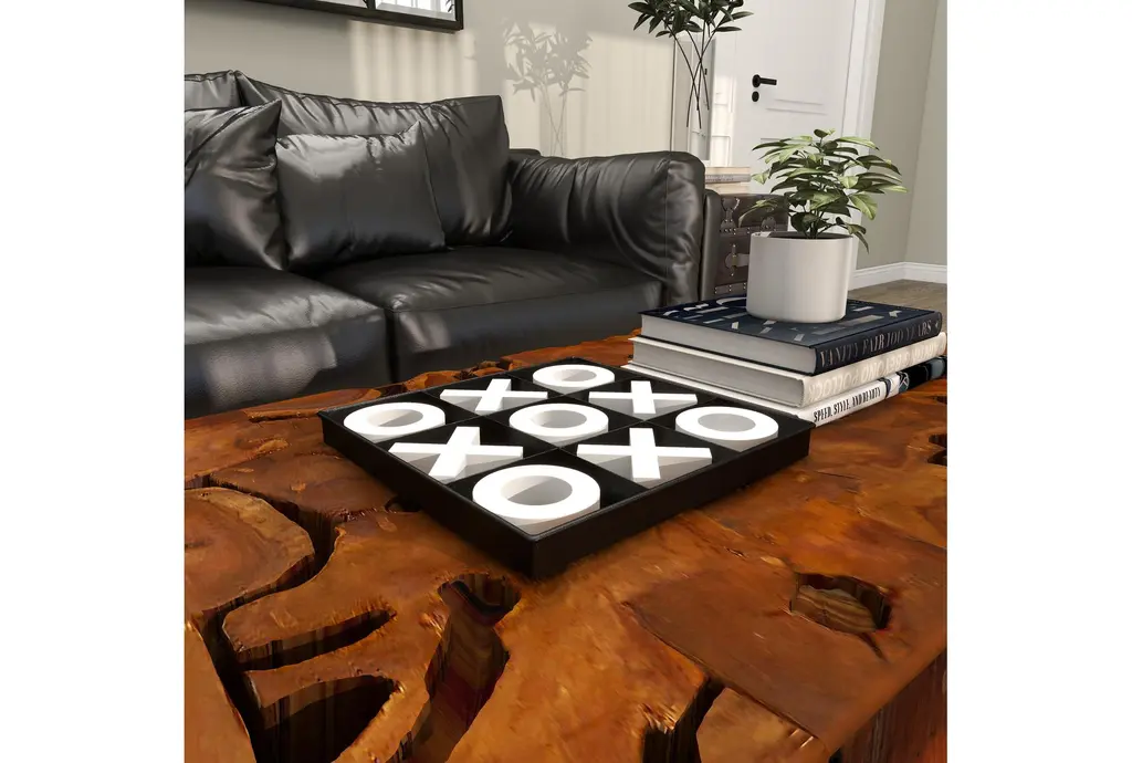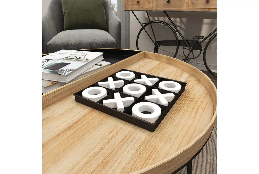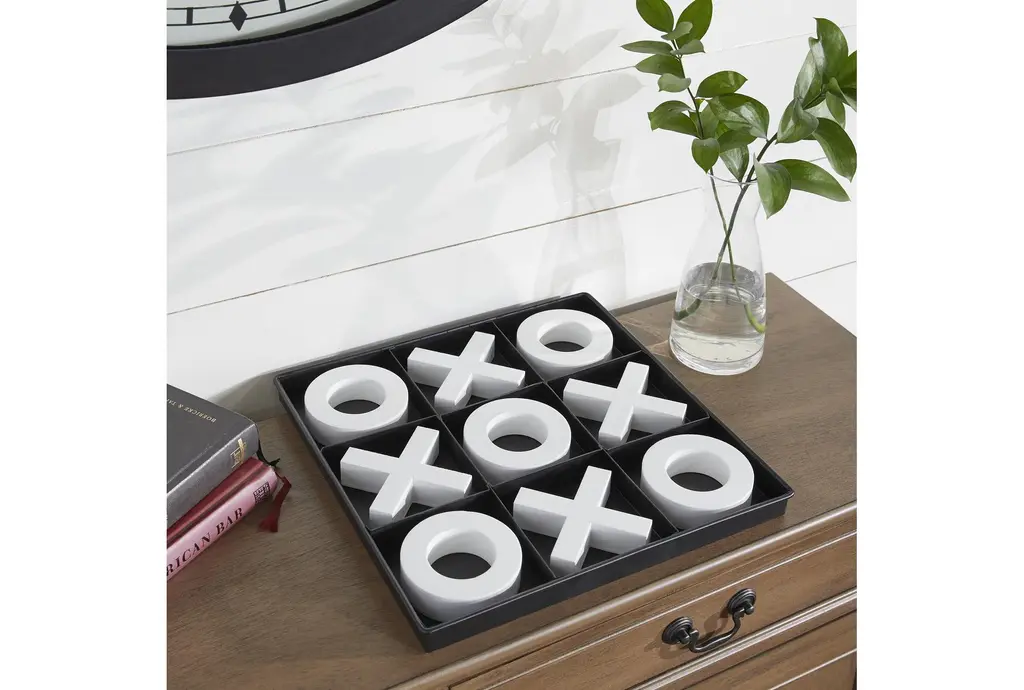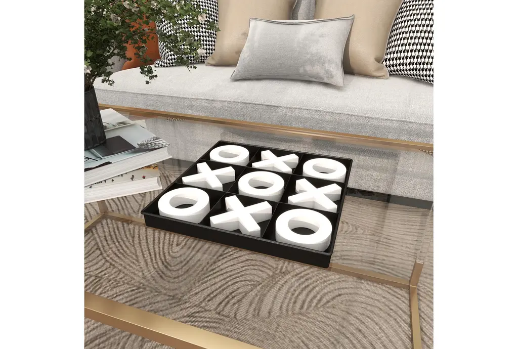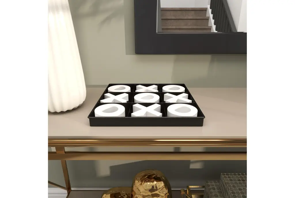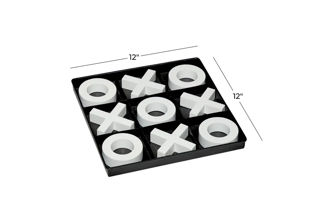 This 12X12 Tic Tac Toe Game Set, in a modern style, is a sleek and elegant addition to your home decor. Made from wood, it features a black square board with white X and O pieces, offering a minimalistic design that effortlessly exudes luxury.