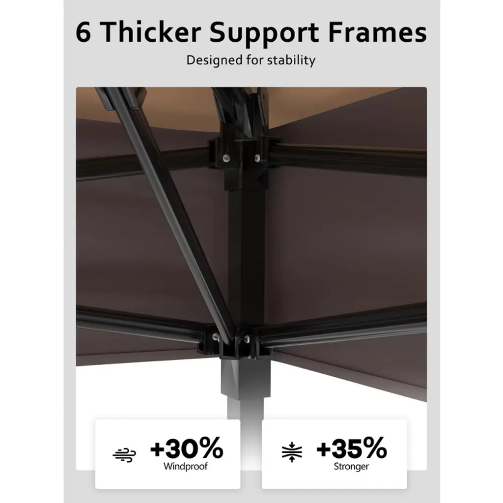 Our outdoor patio gazebo is engineered for strength with a high-quality,thickened steel frame and rust-resistant coating,ensuring longevity and stability.This Outdoor Canopy Tent with Mosquito Netting is built to last,making it a reliable choice for your backyard tent needs. Enjoy silver plated PU lining with UPF 50+ UV protection in our Outdoor patio gazebo,keeping you safe from the sun's harmful rays.The waterproof and sun-proof material, along with high-quality mosquito nets, provide excellent protection while maintaining visibility and airflow. Offering 169 square feet of shaded space,our outdoor patio gazebo is perfect for social gatherings.The 13x13 canopy comfortably accommodates 10 people, providing ample headroom and making it an ideal space for family and friends to relax under. This backyard tent comes with four zippered mosquito net walls that can be easily installed or removed.Ideal for various outdoor spaces, from patios to poolside parties it keeps bugs at bay while you enjoy the outdoors. Our outdoor patio gazebo is designed for easy installation, Simply unfold the frame, attach the canopy cover,secure the corners, and extend the legs.With just 1-2 people,you can quickly build your outdoor tent, making it a convenient option for any outdoor event