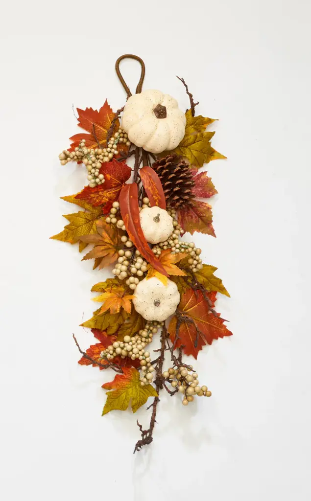 Bring the spirit of the holidays to your home with this beautiful teardrop ornament. It features white berries and leaves. The perfect accent to any holiday decoration.