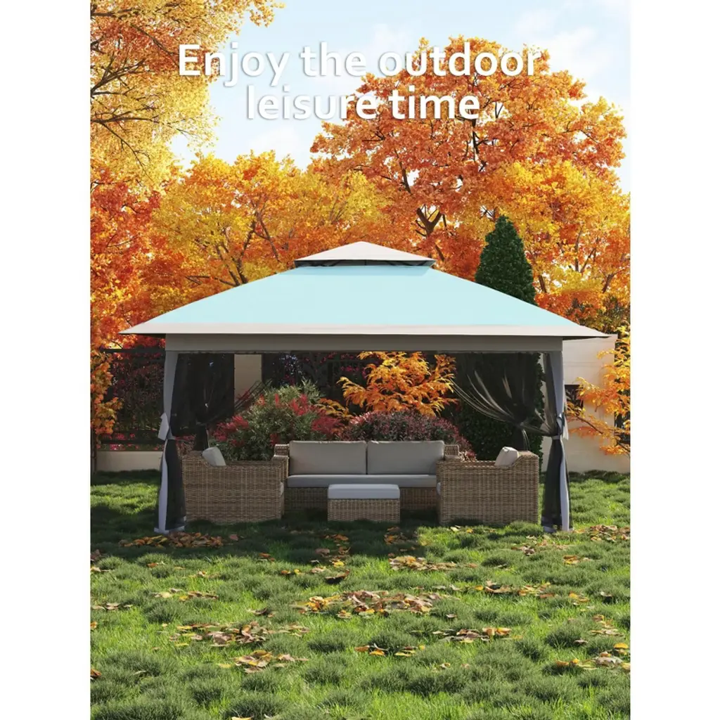 13 X 13 Pop Up Gazebo With Mosquito Netting,outdoor Patio Gazebo,outdoor Canopy Tent With Mosquito Netting,backyard Tent,light Blue + Light Grey
