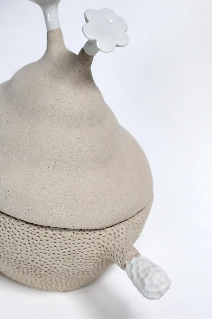 136/23 Unique Tureen by Meritxell DuranOne of a Kind.Dimensions: D 18 x W 38 x H 28 cm.Materials: High temperature clay with interior glaze and porcelaine.Meritxell Duran (Barcelona 1964) signed this new project , which was born in 2020 with the idea of collecting, cooking and serving nature at the table, with handcrafted objects. From the mountains, in a town near Montseny, he thinks and builds other possibilities of working and living in the company of new utensils designed with old techniques but with a new look, more emotional and humorous, a disturbing mix that does not leave the viewer indifferent. This new project is a tribute to the countryside, to the generations that have quietly cultivated the land, maintained the landscape and a generous and honest way of working.