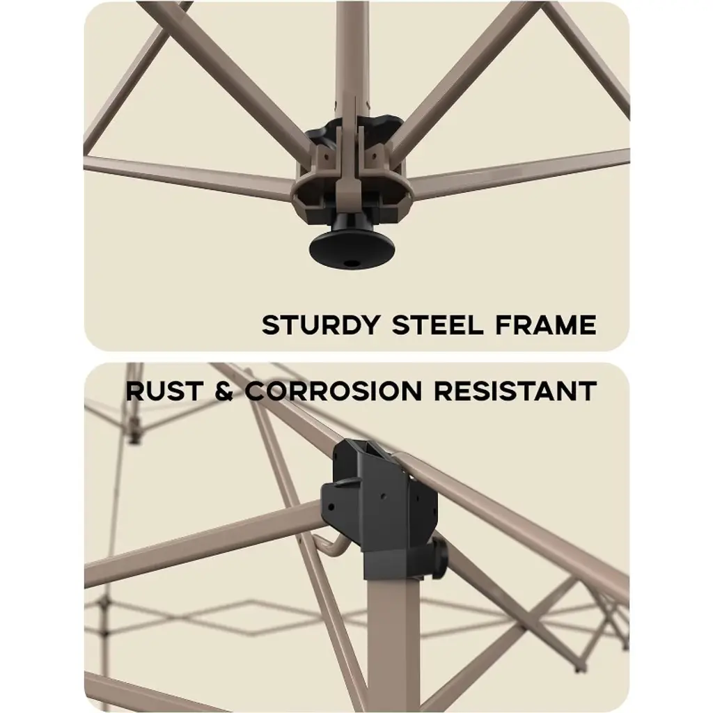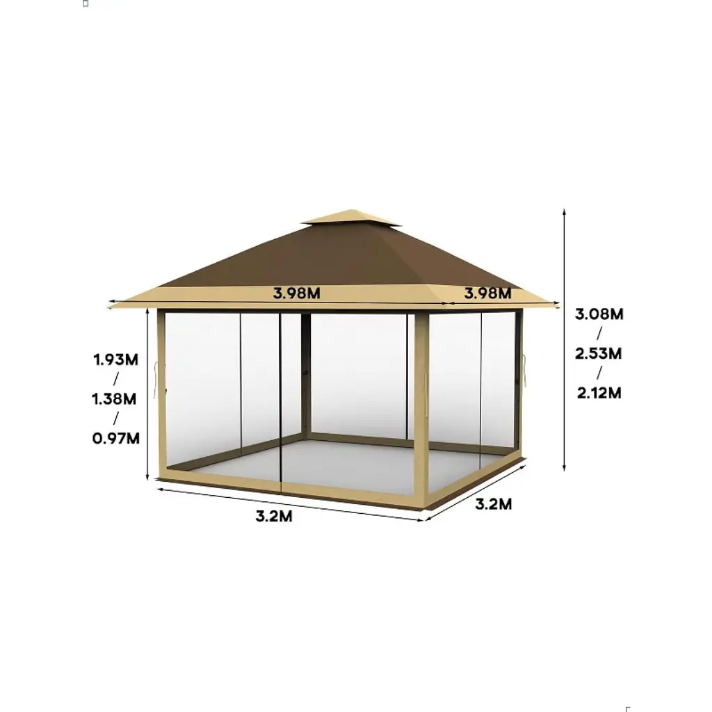13x13 Ft Gazebo Tent Outdoor Pop Up Canopy Tent With Netting, Adjustable Height Instant Gazebos For Patio Garden Backyard,khaki