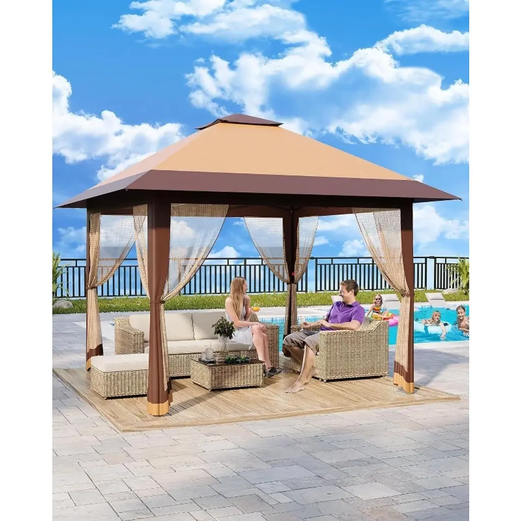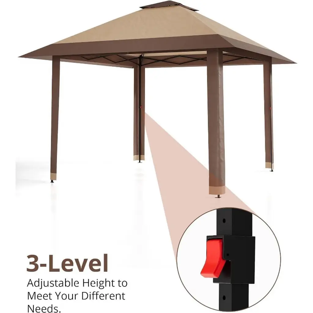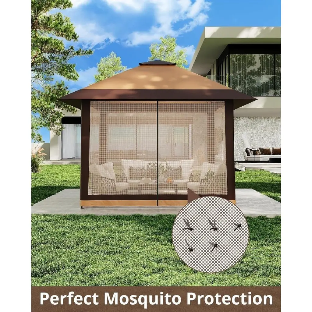 Stay cool and bite-free with this 13x13 FT pop-up gazebo, designed for instant shade and comfort in your outdoor spaces. Featuring a high-quality 300D silver-coated canopy, this tent provides reliable UV protection and rain resistance, making it ideal for backyard parties, patio lounging, beach days, and camping trips. The zippered mosquito netting keeps insects out while allowing airflow. Easy to set up and fold down with a wheeled carry bag included, this portable gazebo is the perfect companion for all your outdoor gatherings.