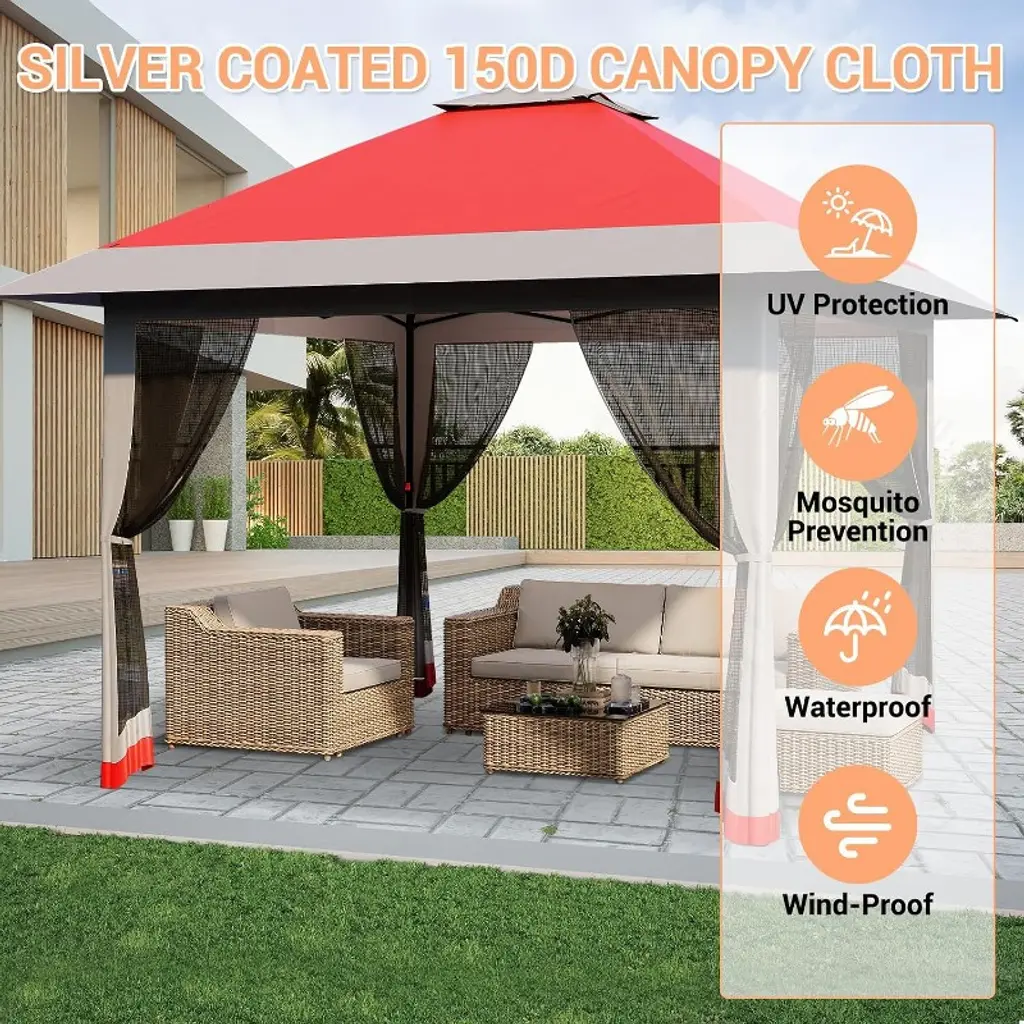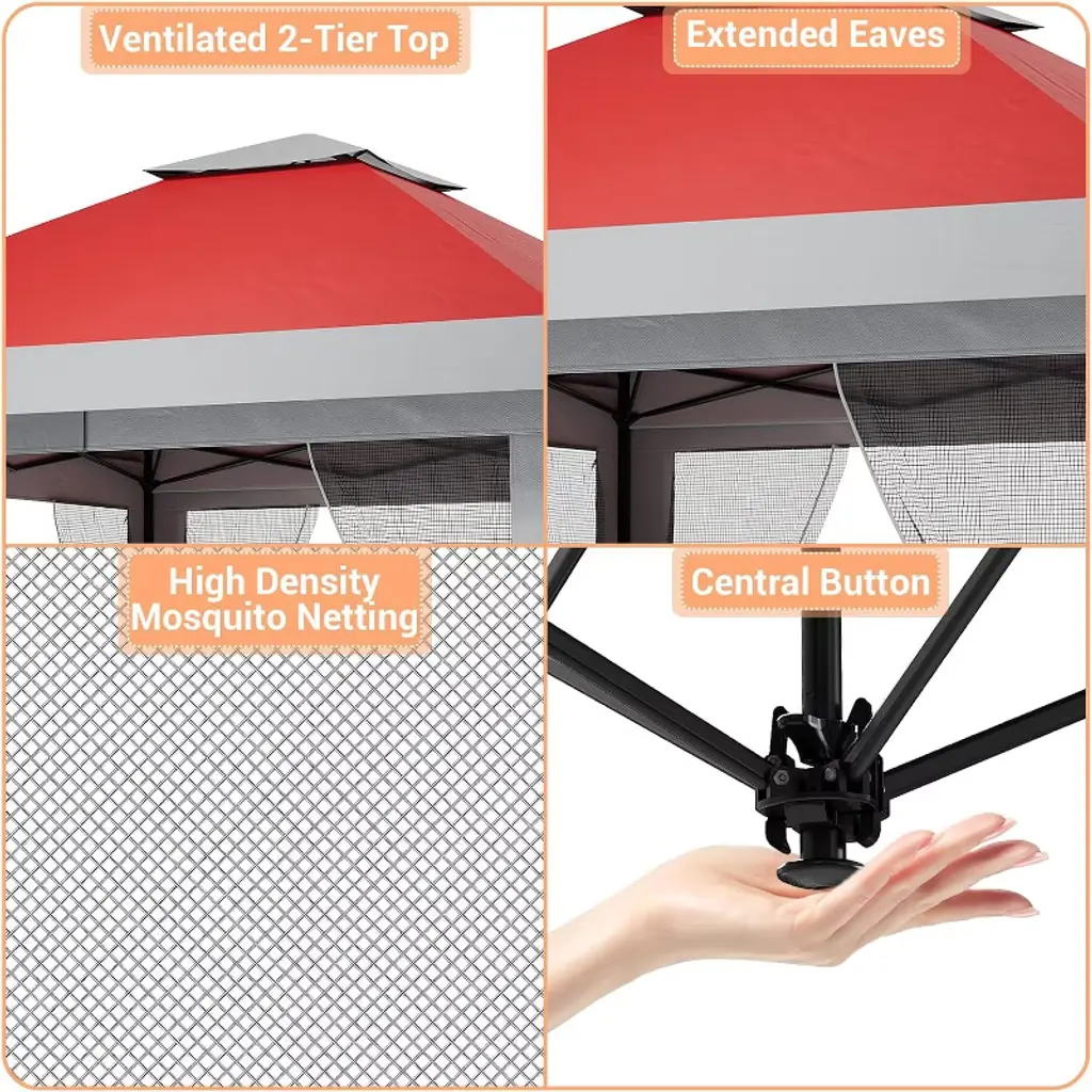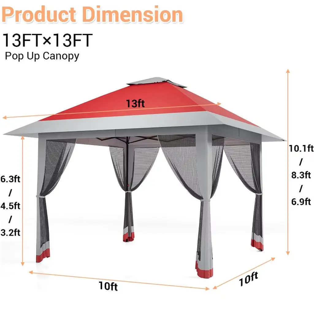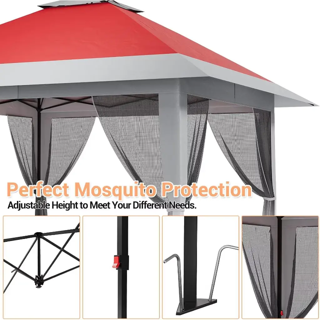 13x13ft Folding Outdoor Gazebo With Mosquito Netting, Height Adjustable Waterproof Canopy Tent