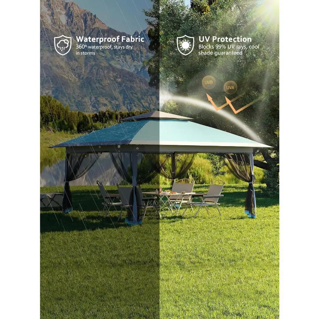 13x13ft Folding Outdoor Gazebo With Mosquito Netting, Height Adjustable Waterproof Canopy Tent(light Blue)