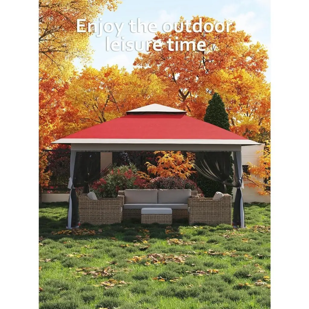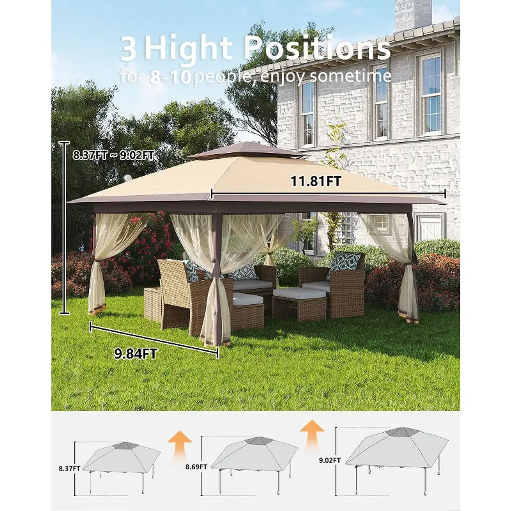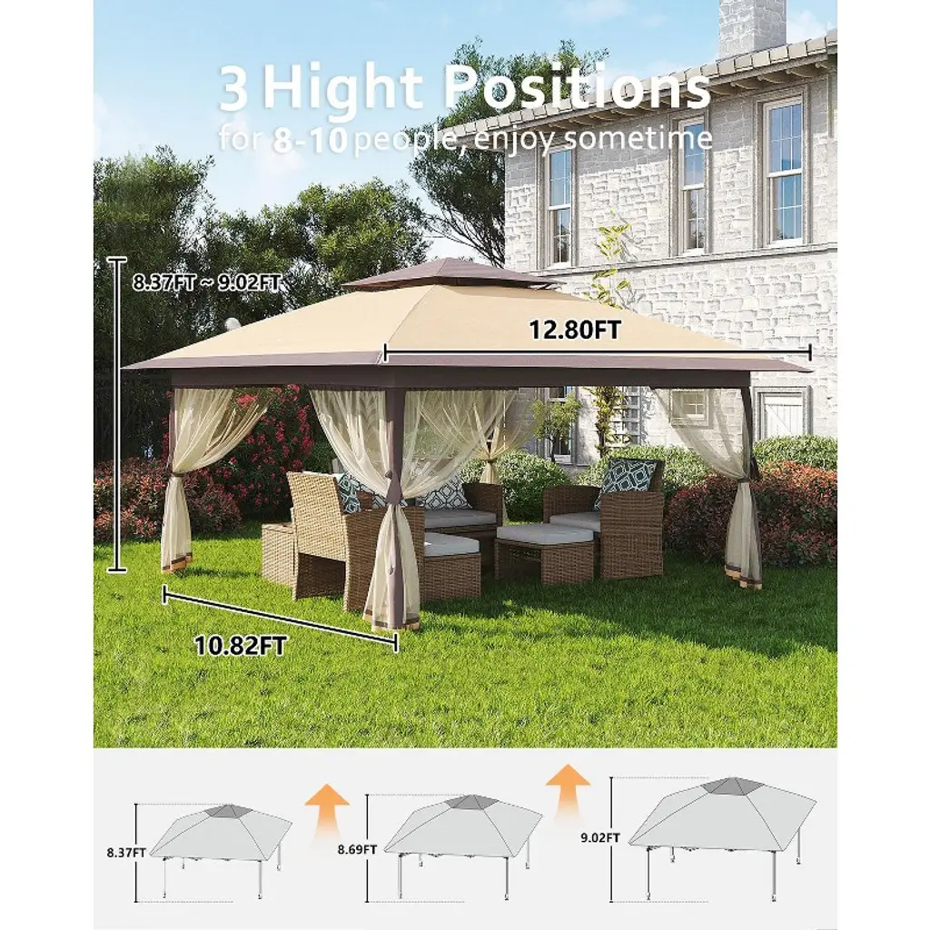 13x13ft Pop-up Gazebo: Outdoor Tent With Mesh Cover, Adjustable Height Canopy, Perfect For Backyard And Patio Use, Includes Carry Bag-khaki