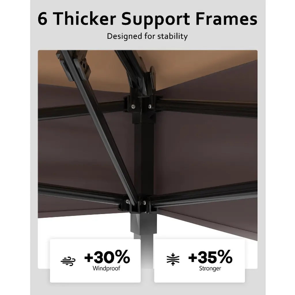 [Sturdy and Durable Construction]Experience exceptional quality with our pop-up gazebo, designed with a robust metal frame and legs featuring a protective powder-coated finish. This design not only enhances its rust resistance but also guarantees long-lasting durability, making it perfect for any outdoor setting. You can trust our gazebo tent to withstand various weather conditions while providing reliable shelter for your gatherings. [EASY TO INSTALL, PORTABLE TO CARRY] Installing a deck gazebo has never been easier! Our innovative design allows for quick installation so you can start enjoying your outdoor space right away. It also comes with a convenient carry bag so you can take it with you on all your adventures. Whether it's a beach day, a camping trip, or a backyard party, this gazebo is the perfect choice for shade and comfort. [Generous 169 Square Feet of Shade]Our spacious 13x13 ft pop-up canopy provides a generous 169 square feet of shade, perfect for accommodating tables, chairs, and guests. The roomy design ensures you have ample space to move freely while enjoying protection from harsh sunlight, unexpected rain, and wind. This makes it an ideal addition to any outdoor event, from family picnics to weddings. [Comprehensive Package Contents]Your purchase includes everything you need to get started: a wheeled carrying bag for easy transportation, a sturdy folding steel frame, a durable canopy top, two smaller canopy tops, four mesh screens for bug protection, and multiple stakes and sandbags to secure your setup. This all-inclusive package ensures you have everything needed for a successful gathering under your gazebo. [Outstanding Customer Service]We prioritize your satisfaction. Our dedicated customer service team is available 24 hours a day to assist you with any questions or concerns you may have. Feel free to reach out anytime; we’re here to ensure you have a great experience with your new gazebo.这是产品描述,写一个产品Deseription给我 Product Description Sturdy and Reliable Build Discover unmatched durability with our premium pop-up gazebo, crafted with a strong metal frame and legs coated in a protective powder finish. This rust-resistant design ensures your gazebo stands the test of time, delivering dependable shelter for all your outdoor needs. Built to endure diverse weather conditions, it’s the perfect companion for any occasion, from casual get-togethers to special events. Effortless Setup, Ready to Go Anywhere Say goodbye to complicated assembly! Our pop-up gazebo features a user-friendly design that sets up in minutes, letting you enjoy your outdoor space without delay. When it’s time to move, simply pack it into the included portable carry bag. Whether you’re heading to the beach, camping in the woods, or hosting a backyard bash, this gazebo offers unbeatable convenience and comfort on the go. Expansive 169 Square Feet of Coverage With a spacious 13x13 ft canopy, this gazebo provides an impressive 169 square feet of shaded space—plenty of room for tables, chairs, and guests. Move freely and relax under its protective cover, shielded from intense sun, sudden showers, or breezy gusts. Ideal for everything from cozy family picnics to grand celebrations like weddings, it’s your go-to solution for outdoor enjoyment. All-in-One Accessory Kit Everything you need is included! Your gazebo comes with a wheeled carrying bag for easy transport, a robust folding steel frame, a large canopy top, two additional smaller canopy tops, four mesh screens to keep bugs at bay, plus stakes and sandbags for secure anchoring. This complete package has you covered for a seamless and enjoyable outdoor experience. Top-Notch Support Anytime Your satisfaction is our priority. Our friendly customer service team is available around the clock to answer your questions and address any concerns. Reach out anytime—we’re committed to making sure you love your gazebo and every moment spent under it.