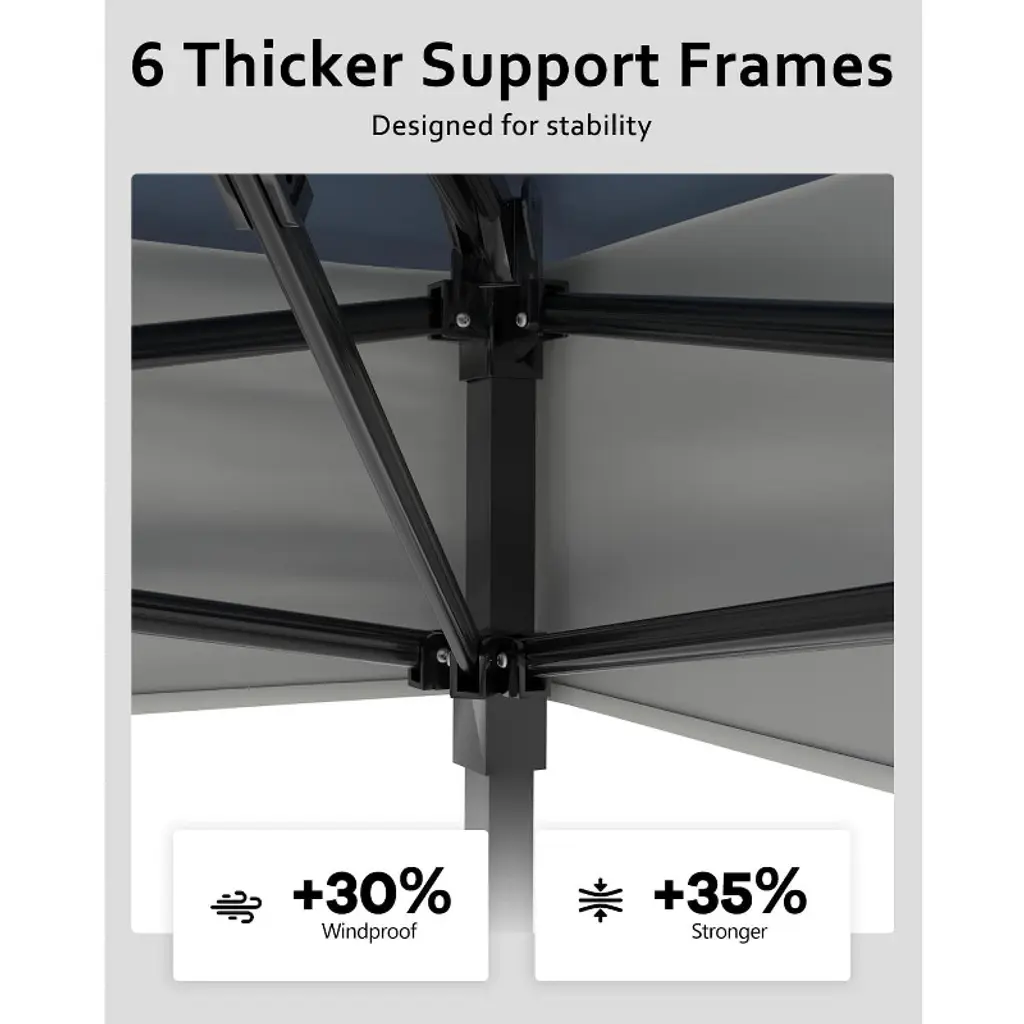 [Sturdy and Durable Construction]Experience exceptional quality with our pop-up gazebo, designed with a robust metal frame and legs featuring a protective powder-coated finish. This design not only enhances its rust resistance but also guarantees long-lasting durability, making it perfect for any outdoor setting. You can trust our gazebo tent to withstand various weather conditions while providing reliable shelter for your gatherings. [EASY TO INSTALL, PORTABLE TO CARRY] Installing a deck gazebo has never been easier! Our innovative design allows for quick installation so you can start enjoying your outdoor space right away. It also comes with a convenient carry bag so you can take it with you on all your adventures. Whether it's a beach day, a camping trip, or a backyard party, this gazebo is the perfect choice for shade and comfort. [Generous 169 Square Feet of Shade]Our spacious 13x13 ft pop-up canopy provides a generous 169 square feet of shade, perfect for accommodating tables, chairs, and guests. The roomy design ensures you have ample space to move freely while enjoying protection from harsh sunlight, unexpected rain, and wind. This makes it an ideal addition to any outdoor event, from family picnics to weddings. [Comprehensive Package Contents]Your purchase includes everything you need to get started: a wheeled carrying bag for easy transportation, a sturdy folding steel frame, a durable canopy top, two smaller canopy tops, four mesh screens for bug protection, and multiple stakes and sandbags to secure your setup. This all-inclusive package ensures you have everything needed for a successful gathering under your gazebo. [Outstanding Customer Service]We prioritize your satisfaction. Our dedicated customer service team is available 24 hours a day to assist you with any questions or concerns you may have. Feel free to reach out anytime; we’re here to ensure you have a great experience with your new gazebo.这是产品描述,写一个产品Deseription给我 Product Description Sturdy and Reliable Build Discover unmatched durability with our premium pop-up gazebo, crafted with a strong metal frame and legs coated in a protective powder finish. This rust-resistant design ensures your gazebo stands the test of time, delivering dependable shelter for all your outdoor needs. Built to endure diverse weather conditions, it’s the perfect companion for any occasion, from casual get-togethers to special events. Effortless Setup, Ready to Go Anywhere Say goodbye to complicated assembly! Our pop-up gazebo features a user-friendly design that sets up in minutes, letting you enjoy your outdoor space without delay. When it’s time to move, simply pack it into the included portable carry bag. Whether you’re heading to the beach, camping in the woods, or hosting a backyard bash, this gazebo offers unbeatable convenience and comfort on the go. Expansive 169 Square Feet of Coverage With a spacious 13x13 ft canopy, this gazebo provides an impressive 169 square feet of shaded space—plenty of room for tables, chairs, and guests. Move freely and relax under its protective cover, shielded from intense sun, sudden showers, or breezy gusts. Ideal for everything from cozy family picnics to grand celebrations like weddings, it’s your go-to solution for outdoor enjoyment. All-in-One Accessory Kit Everything you need is included! Your gazebo comes with a wheeled carrying bag for easy transport, a robust folding steel frame, a large canopy top, two additional smaller canopy tops, four mesh screens to keep bugs at bay, plus stakes and sandbags for secure anchoring. This complete package has you covered for a seamless and enjoyable outdoor experience. Top-Notch Support Anytime Your satisfaction is our priority. Our friendly customer service team is available around the clock to answer your questions and address any concerns. Reach out anytime—we’re committed to making sure you love your gazebo and every moment spent under it.