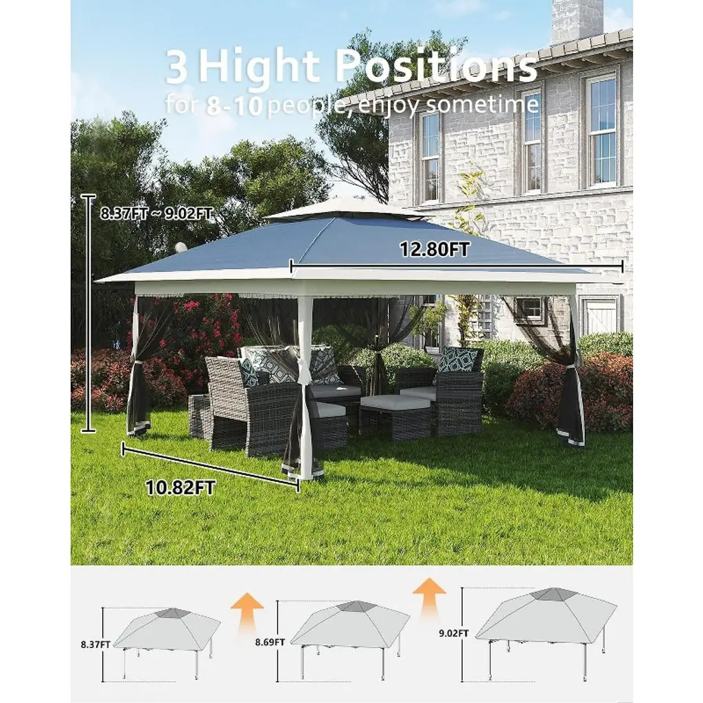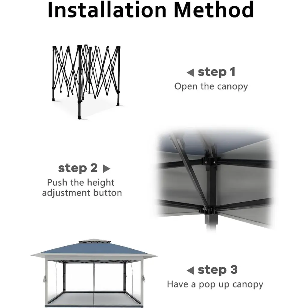 13x13ft Pop-up Gazebo: Outdoor Tent With Mesh Cover, Adjustable Height Canopy, Perfect For Backyard And Patio Use, Includes Carry Bag-navy Blue