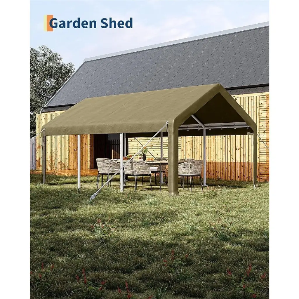 Discover a smart solution for protecting your vehicles and creating extra space at home with this 13'x20' carport. Designed with a spacious interior, it easily accommodates cars, trucks, or boats, and can quickly be adapted into a large work or event space by removing the sidewalls and doors. The flexible setup makes it perfect not only for storage, but also for hosting outdoor parties, family celebrations, or community gatherings. Roll-up windows and doors offer excellent airflow and simple access so you can adjust for weather or privacy with ease. The high-density coated awning shields your belongings from sunlight, rain, and snow, keeping everything underneath safe and dry all year round. Built with a heavy-duty, rust-resistant steel frame and reinforced legs, this carport stands strong against wind and weather, providing reliable protection and peace of mind. Whether you need a dependable parking spot, extra storage, or a covered venue for special occasions, this carport brings both versatility and durability to your outdoor space.